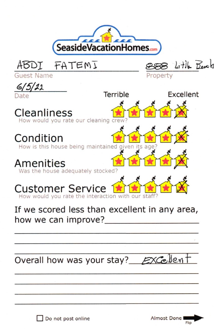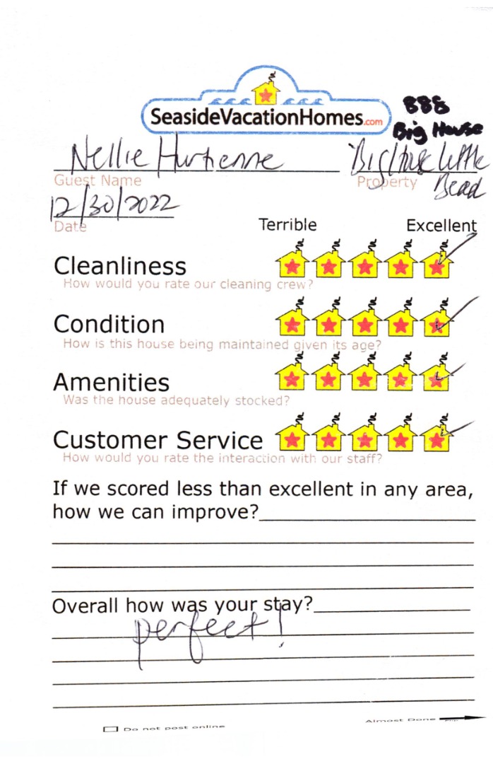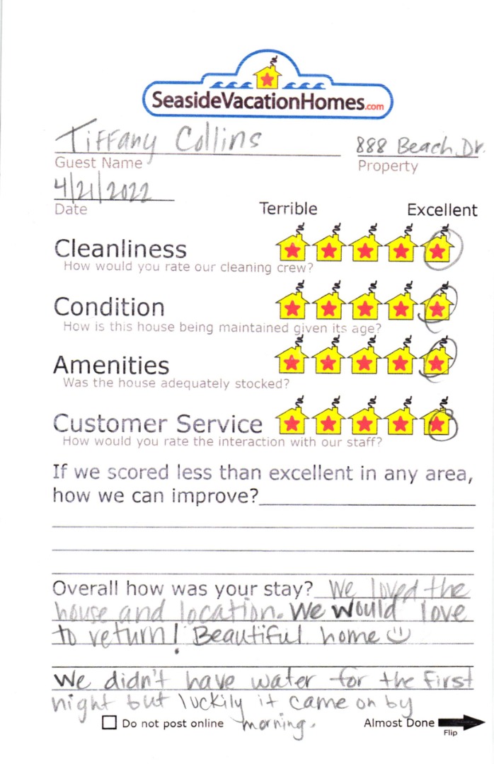 Example: "Is the balcony screened in?" or "Is there a toaster oven?"