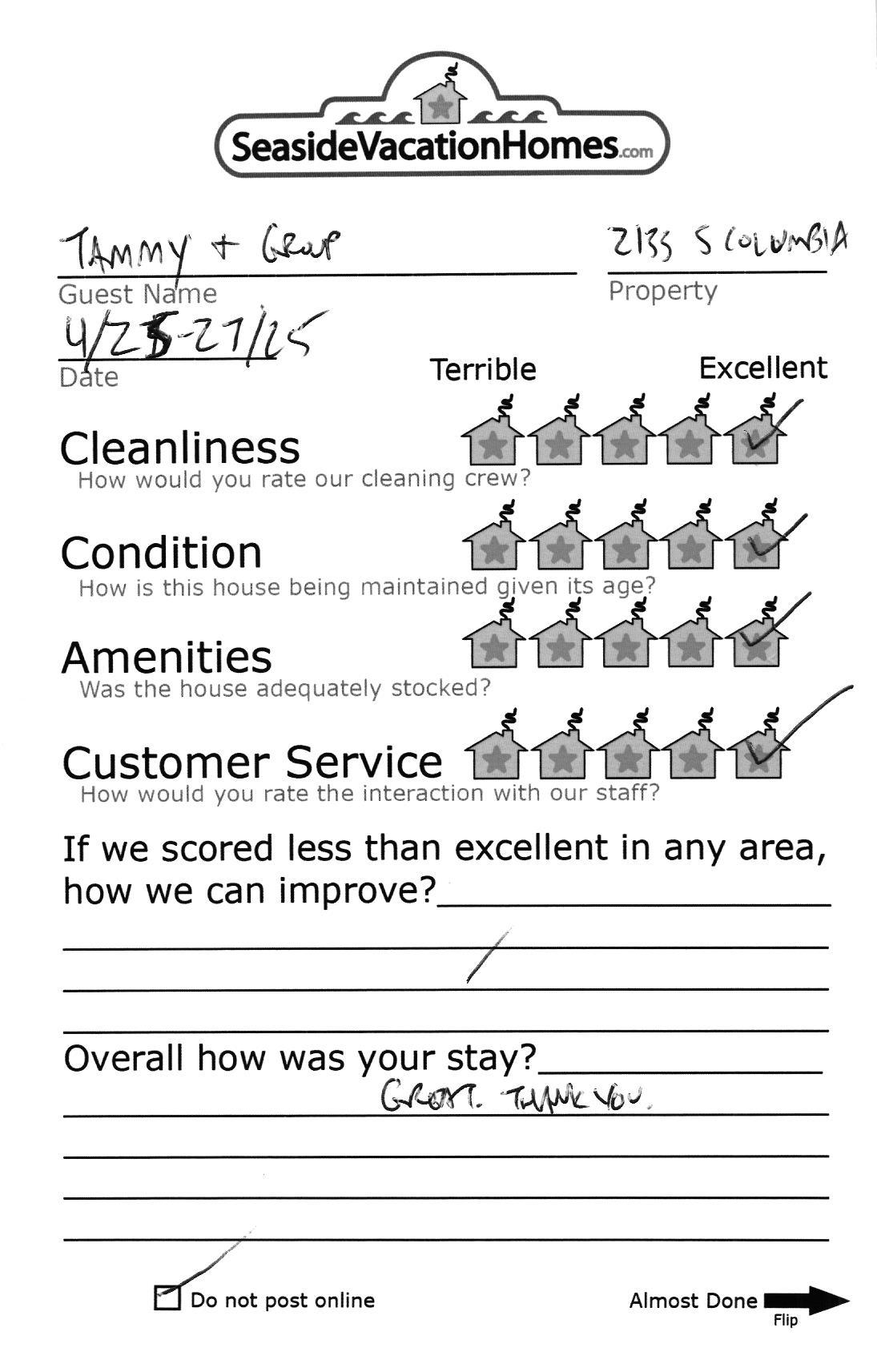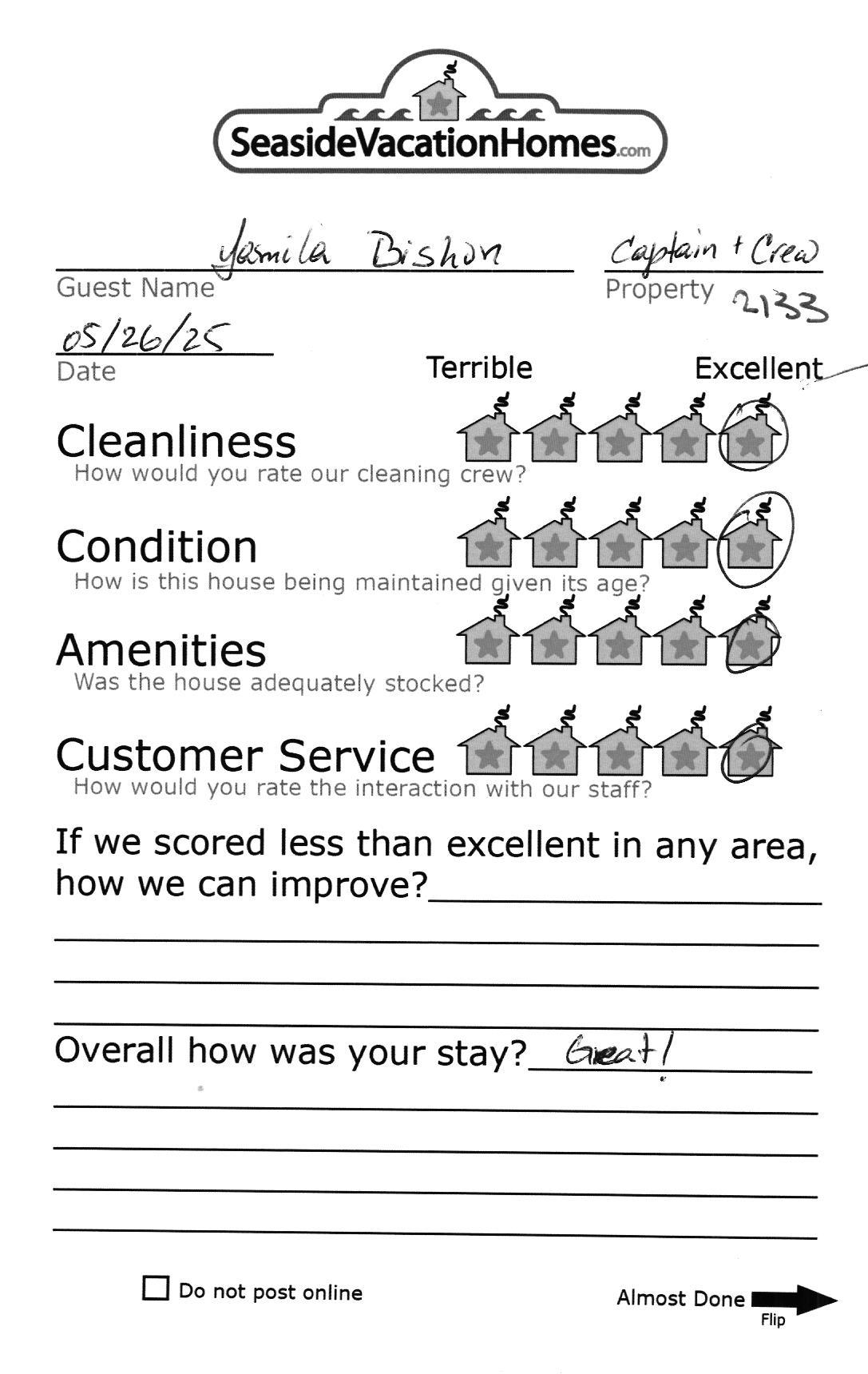 Example: "Is the balcony screened in?" or "Is there a toaster oven?"