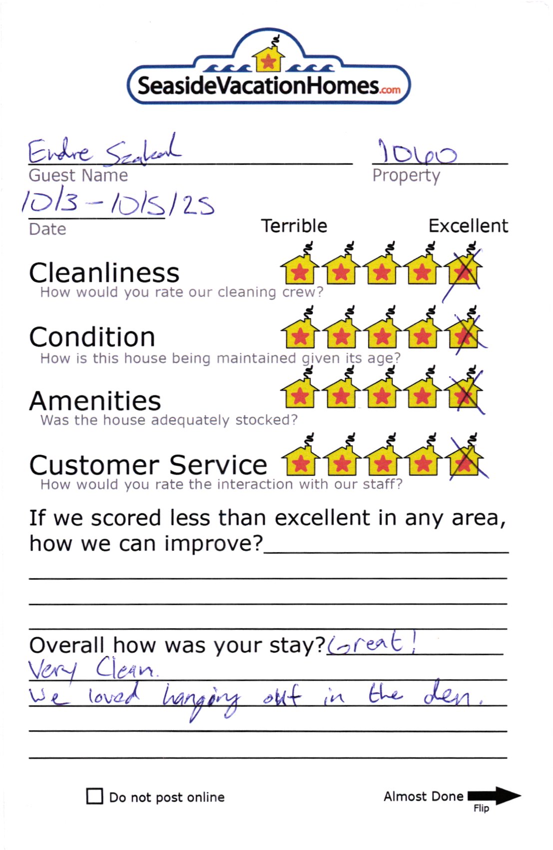 Example: "Is the balcony screened in?" or "Is there a toaster oven?"