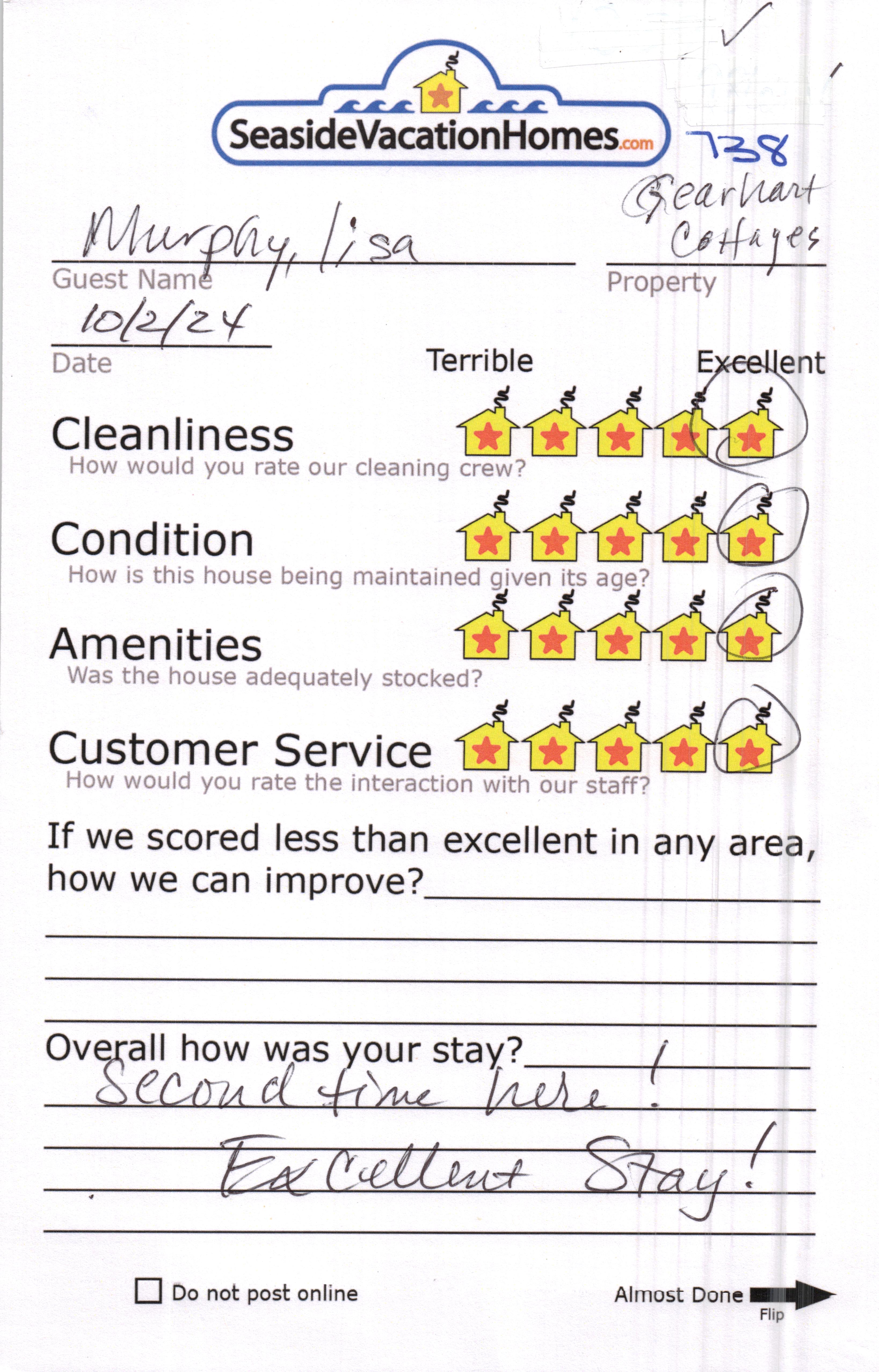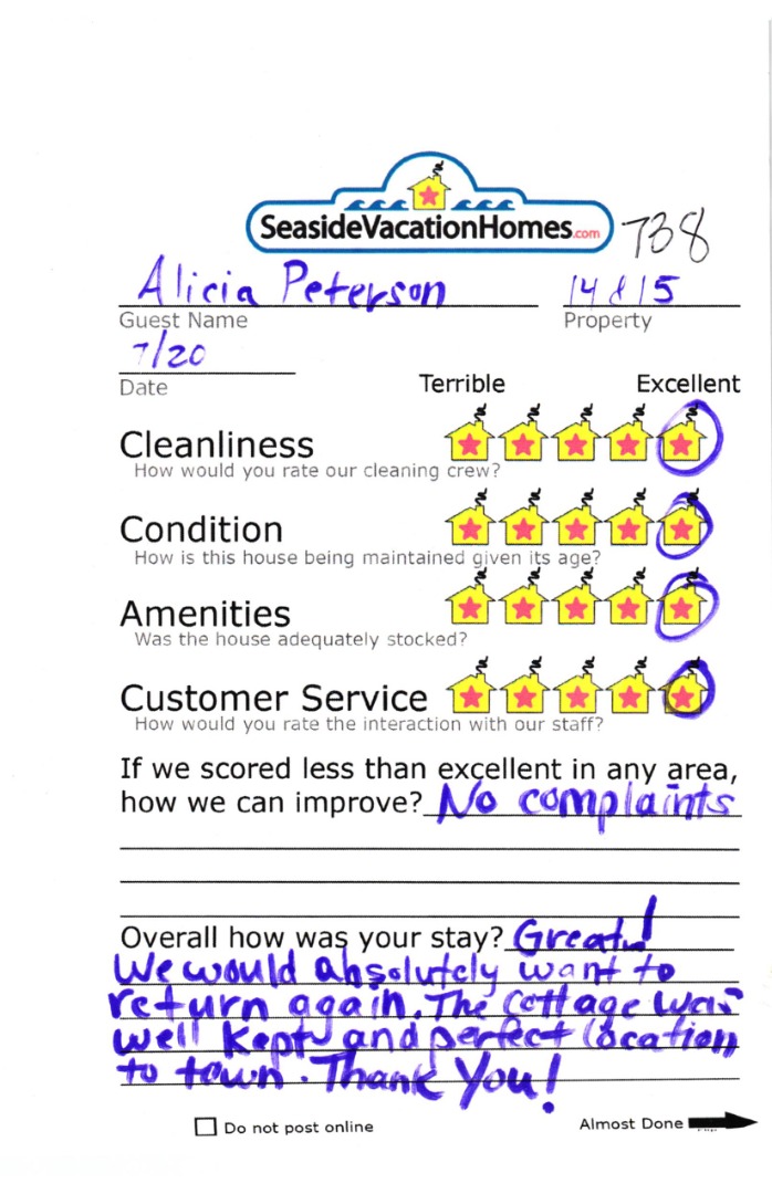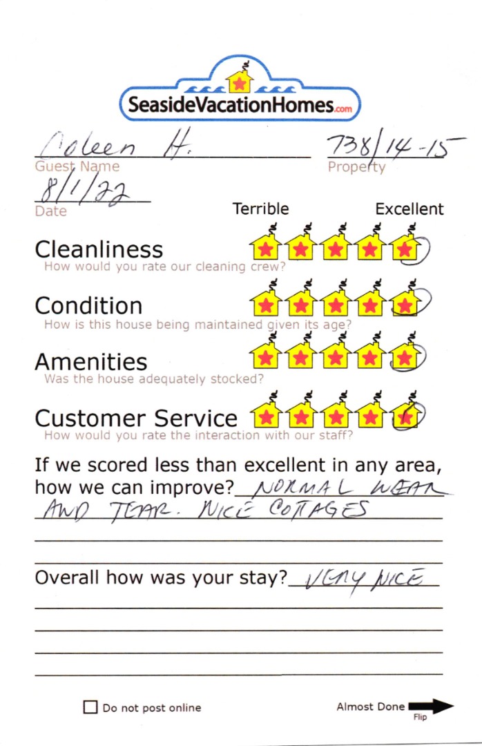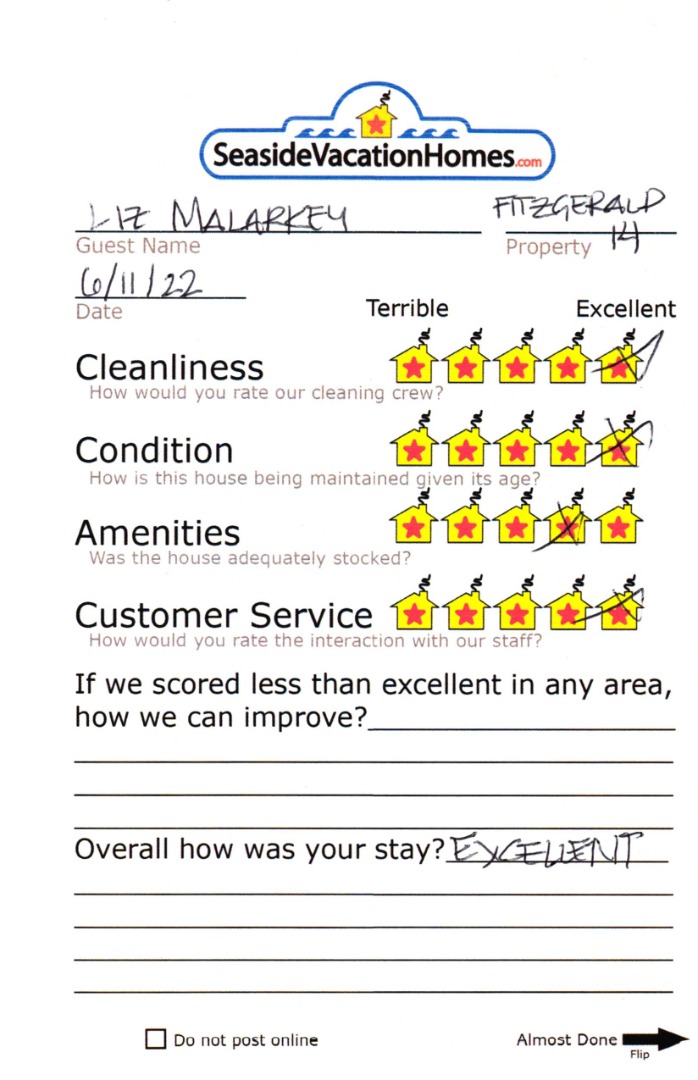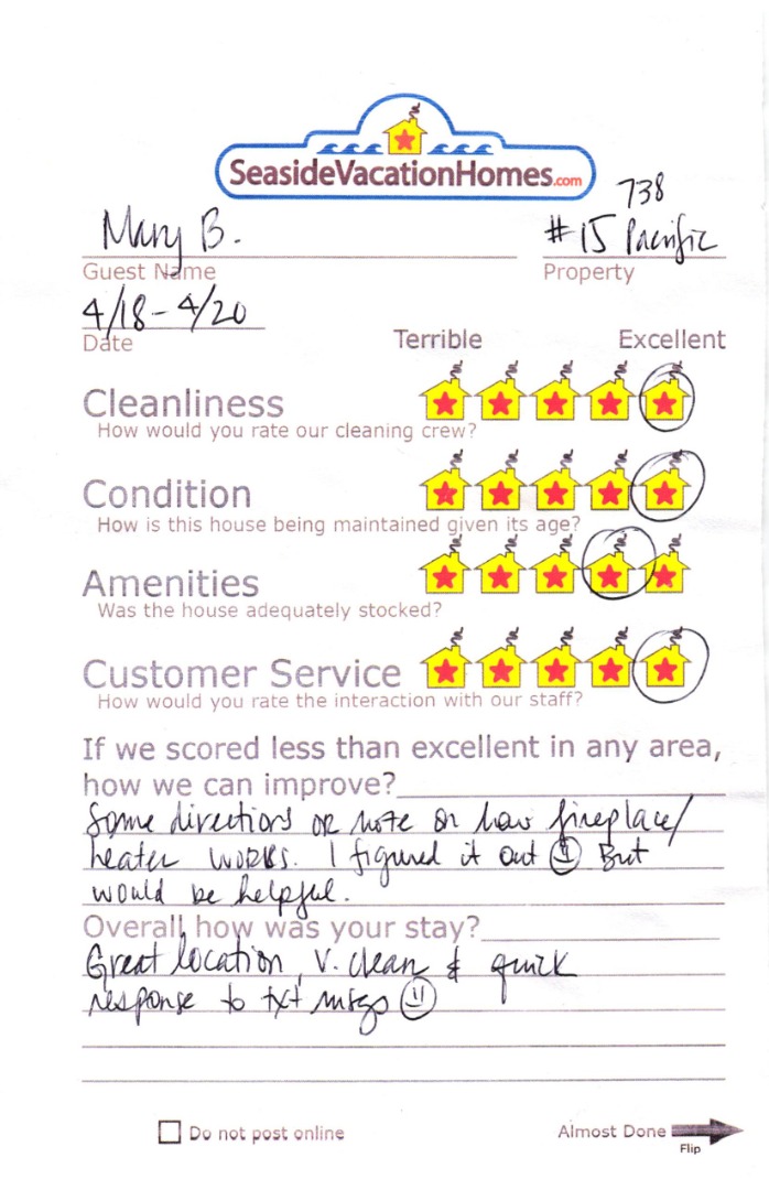 Example: "Is the balcony screened in?" or "Is there a toaster oven?"