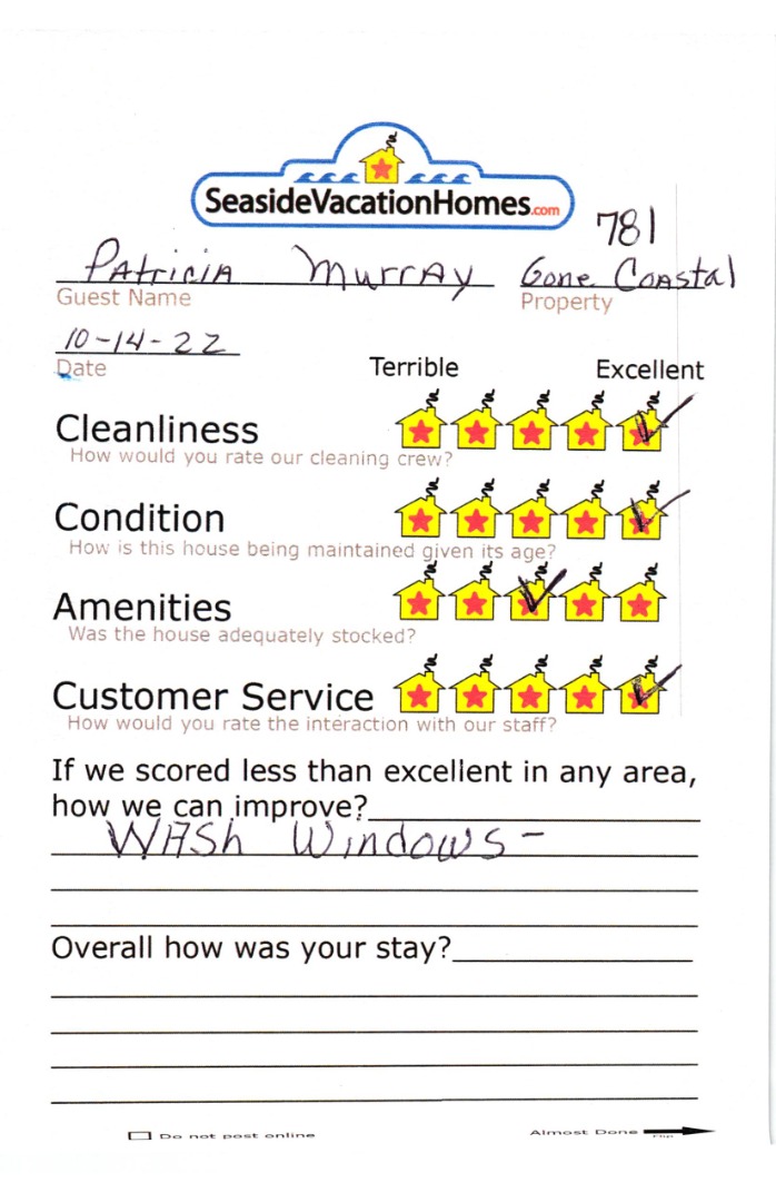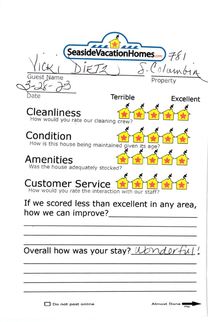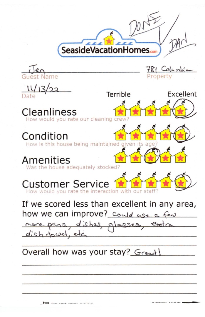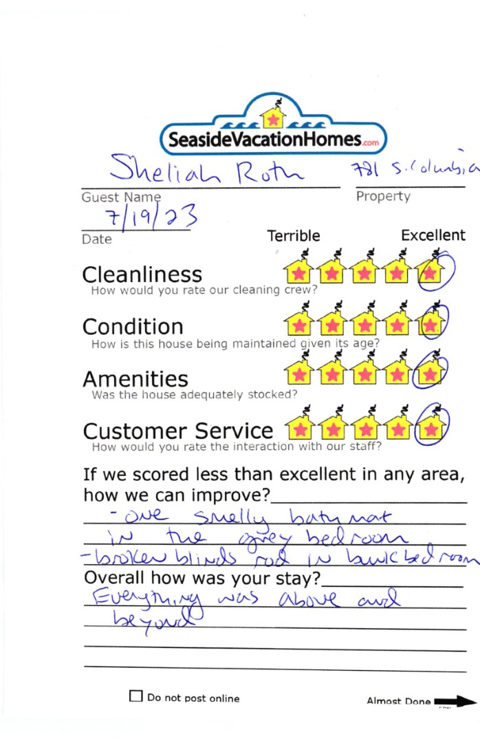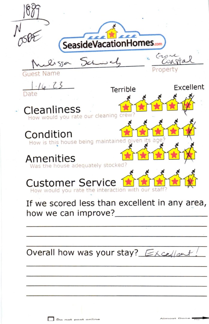 Example: "Is the balcony screened in?" or "Is there a toaster oven?"