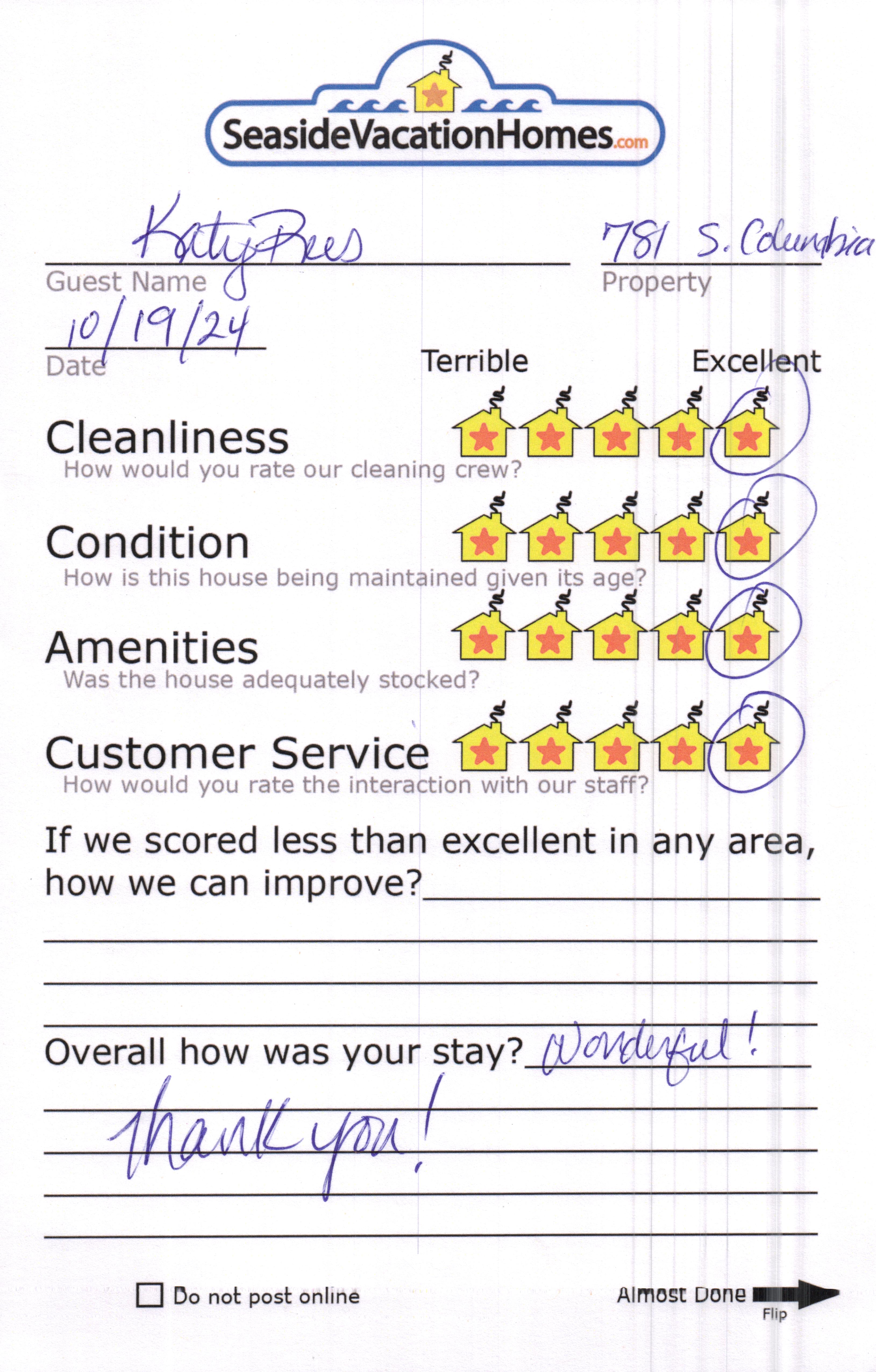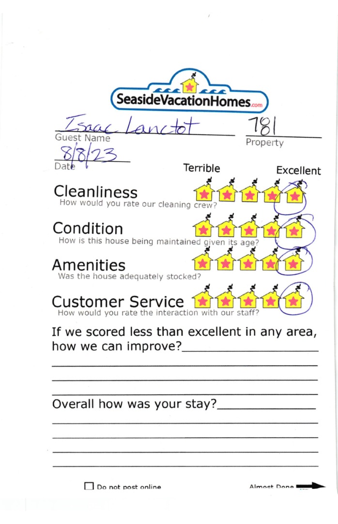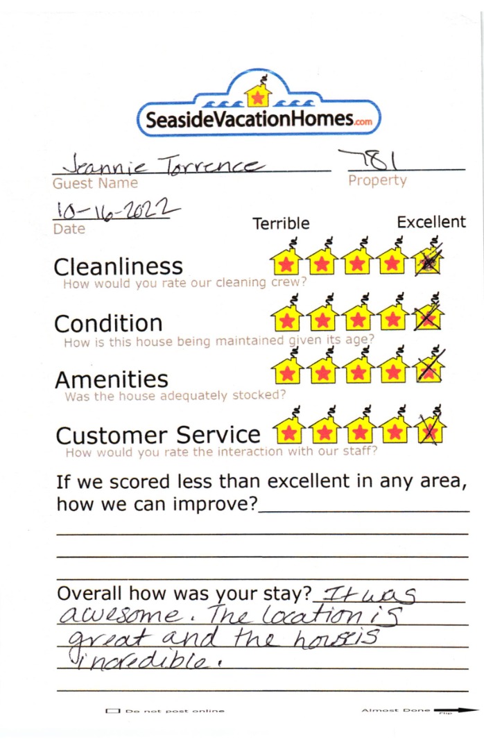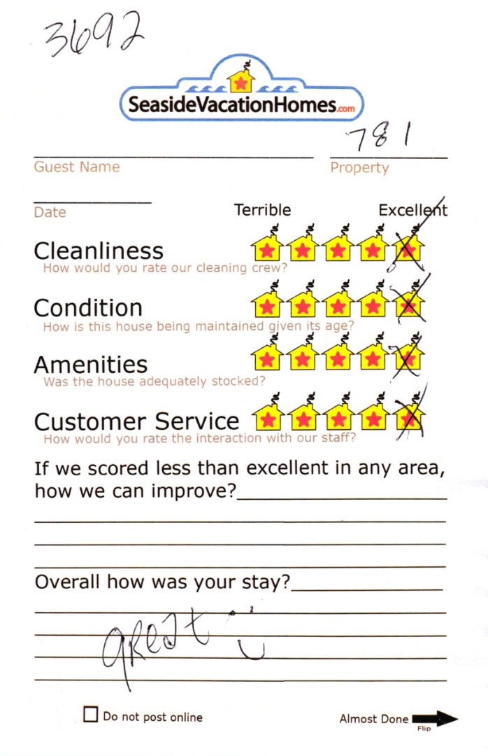 Example: "Is the balcony screened in?" or "Is there a toaster oven?"
