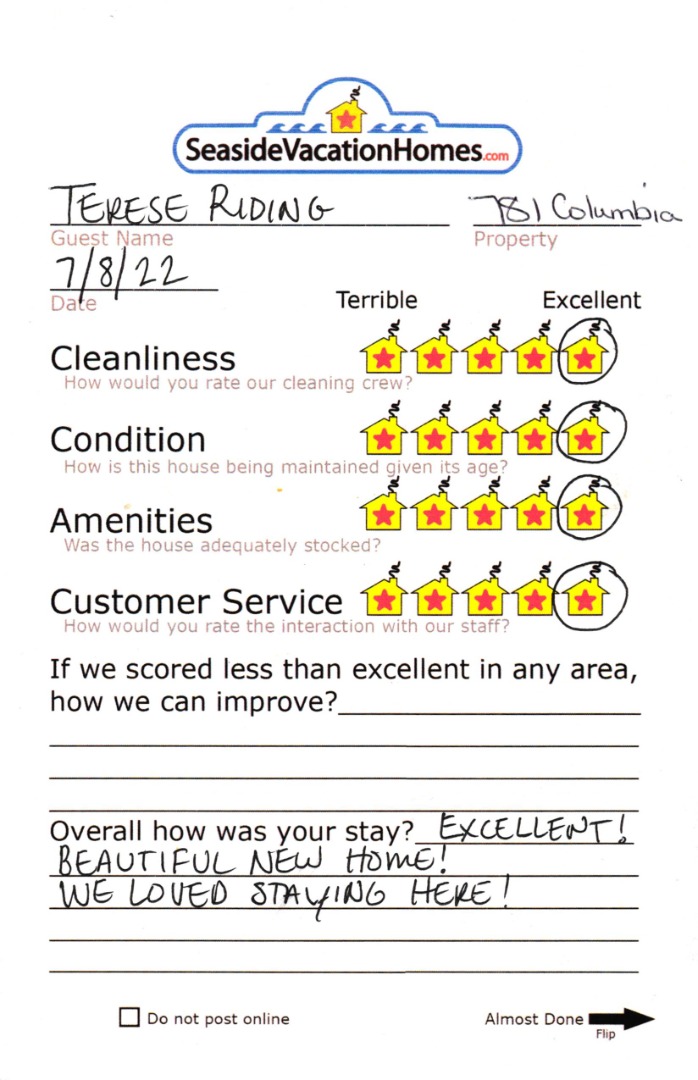 GONE COASTAL at Seaside Beach: Beautiful Home! Newly built and waiting for your family to enjoy! This luxurious 5 bedroom, 5 bath home is located close to downtown restaurants and shops, as well as a block and 1/2 away from the beach. Enjoy having your own bathroom in 4 bedrooms! Cook a meal in the beautiful spacious kitchen while still able to enjoy everyone's company in the living room. Each of the living rooms has a gas fireplace to turn on for those nights you just want to relax and watch a movie or put together a board game. Grill up some burgers on the BBQ in the privacy of the backyard (May-Sept.)! Don't forget to bring your pet! You also have access to the garage with a 50 amp car charger. This home welcomes pets as well so the whole family can come to enjoy!