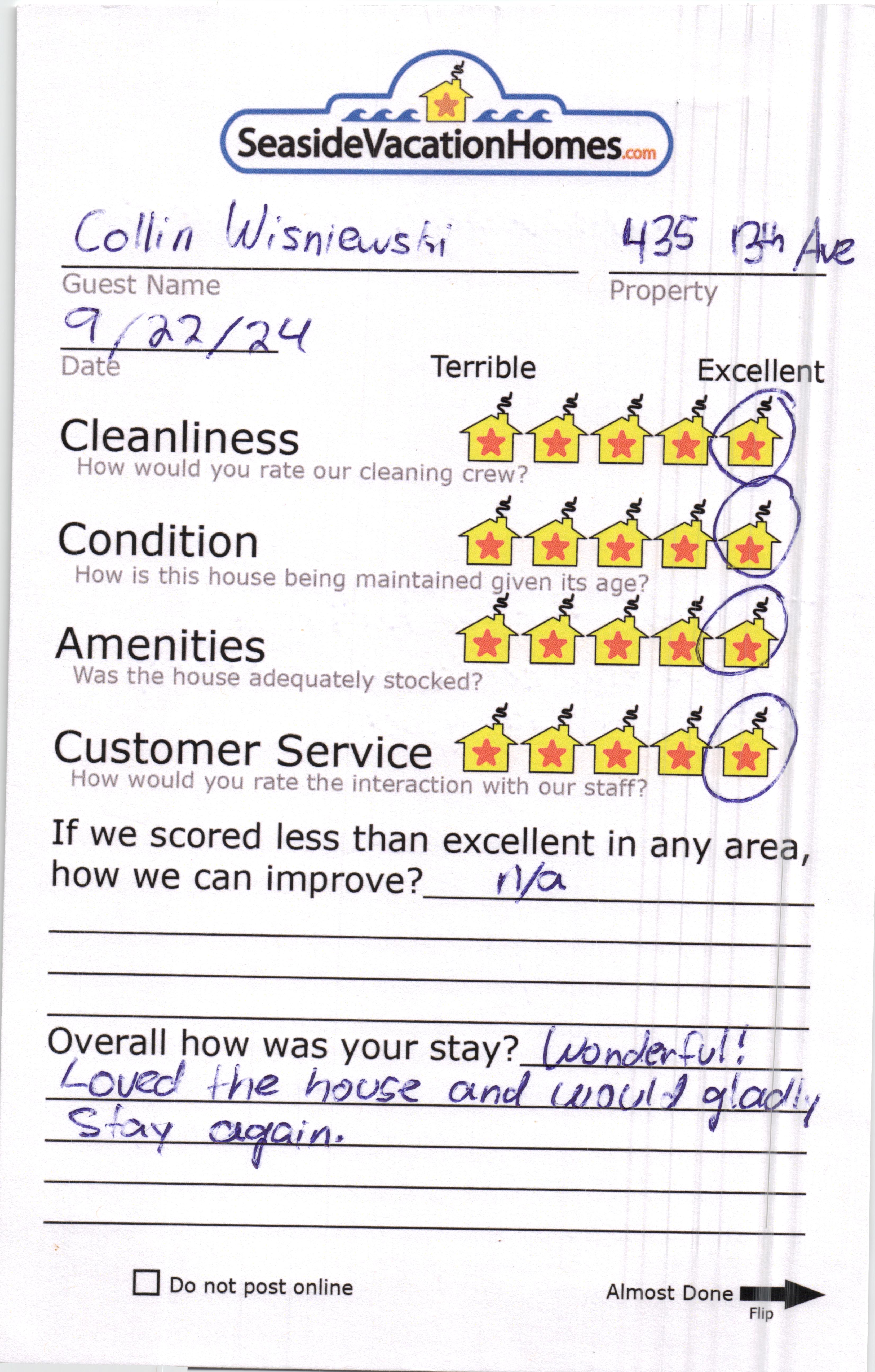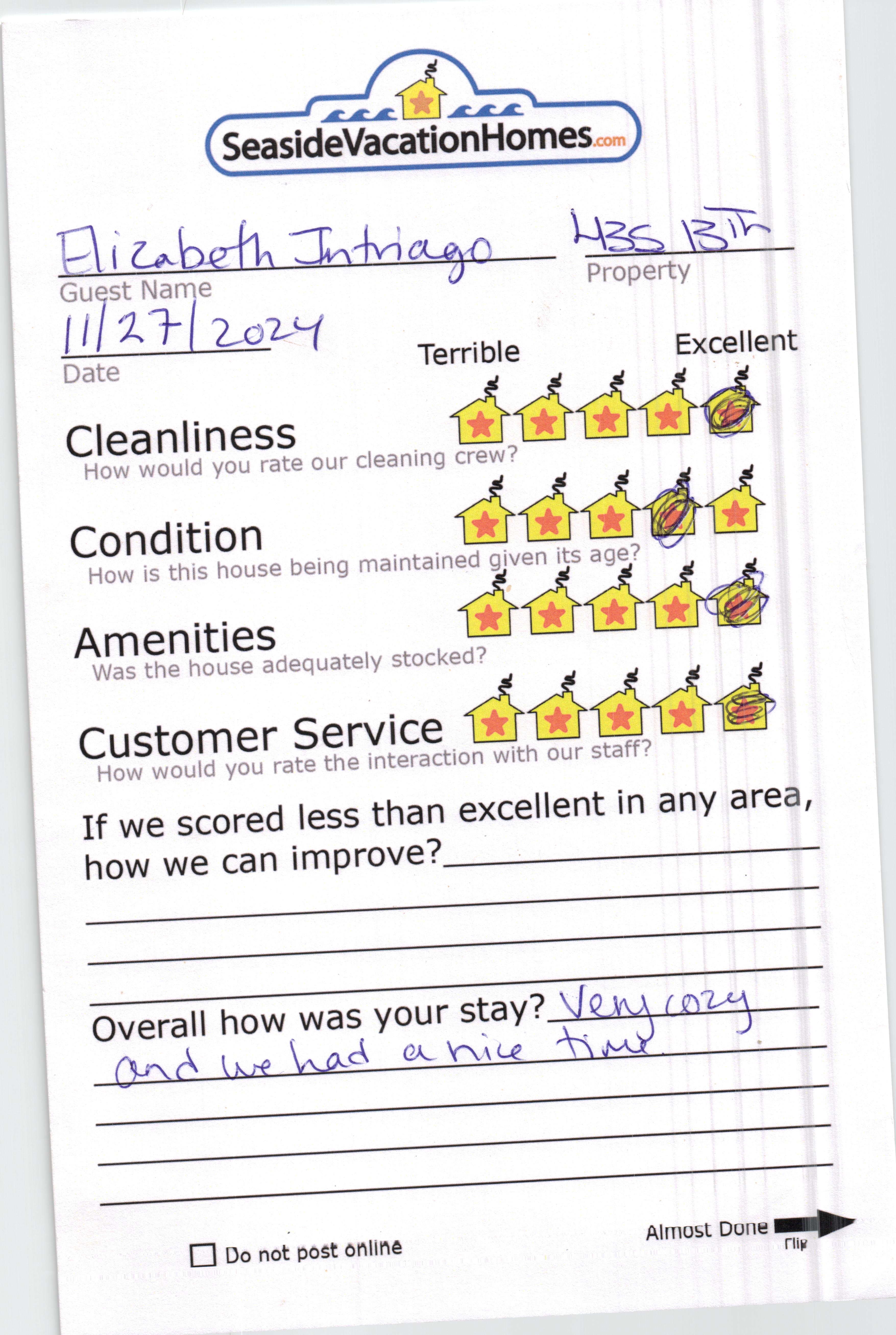 Example: "Is the balcony screened in?" or "Is there a toaster oven?"