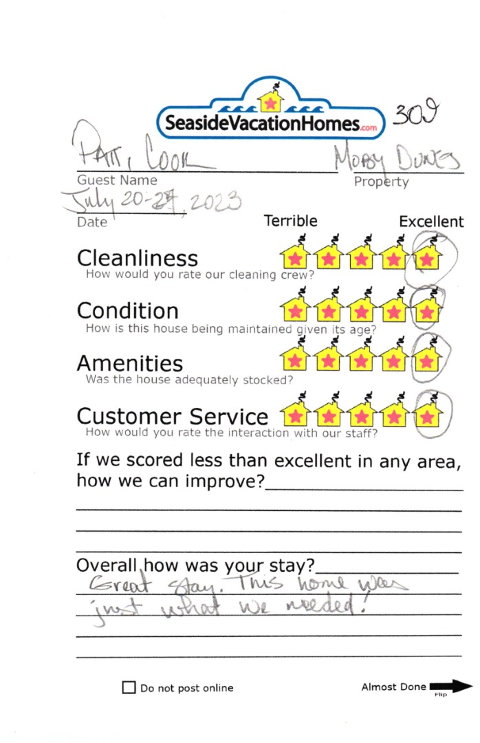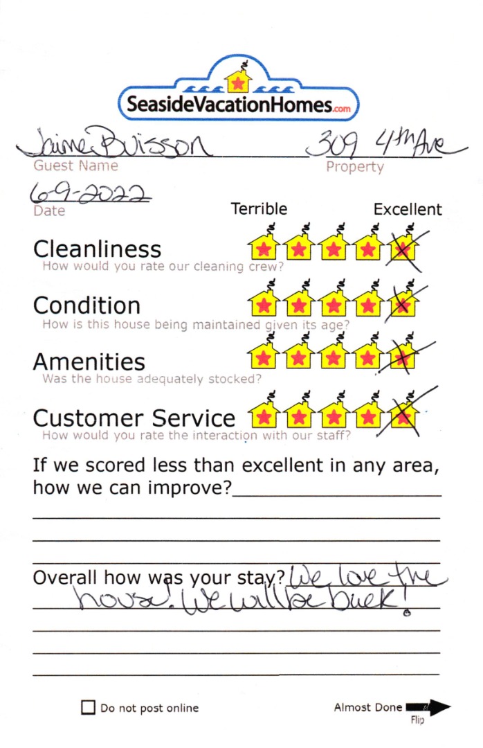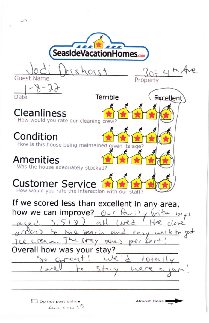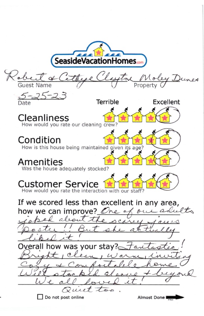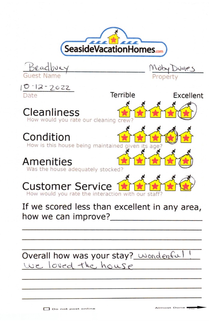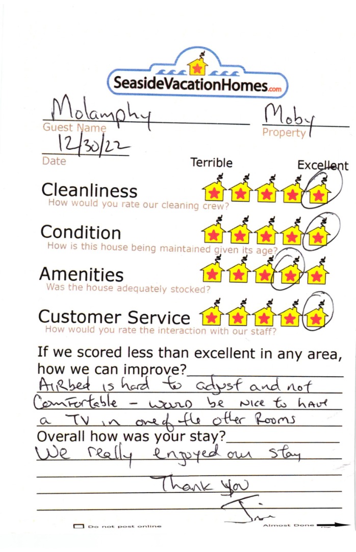 MOBY DUNES at Seaside Beach: 800 ft to the beach! “Thar she blows!” That’s right! It’s the sweetest little beach bungalow in Seaside – Moby Dunes! Nestled just one block from the beach, Moby Dunes is the vacation destination you’ve been looking for. This 3 bedroom/2 bathroom gem provides all the essentials for your vacation needs. The primary bedroom has a King bed with its own private bathroom and newly renovated walk-in shower. The kids' room has 2 twins, and the Queen room has a sleeper sofa. Don’t be fooled by its modest curbside appearance, this adorable bungalow sleeps up to 8 people and has an open and inviting floor plan. Enjoy soaking in the hot tub rain or shine, board games by the wood-burning fireplace, bingeing all your favorite shows/movies on a 65“ Smart flat-screen TV, roasting marshmallows by the firepit in the front yard, BBQ on the back patio (May-Oct), a quick 1 block hop over to the Prom and beach, or a short 3-block stroll to Main Street. Looking for modern conveniences? Well, you’re in luck because Moby Dunes includes a newly installed EV charging station, a dishwasher, a washer/dryer, and free WiFi. Whether you’re searching for a romantic getaway, holiday weekend, or just some good old family fun, this cozy corner has all the comforts of home with a double dose of beach charm. Don’t forget Moby Dunes is a smoke-free, pet-friendly, and, above all, fun-filled environment!