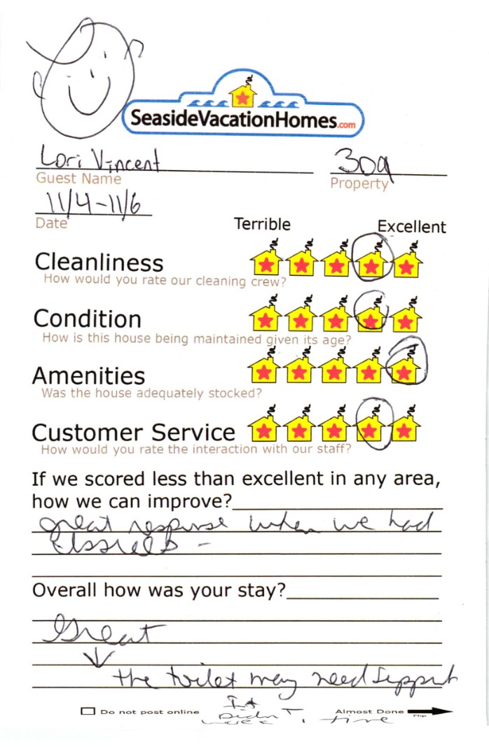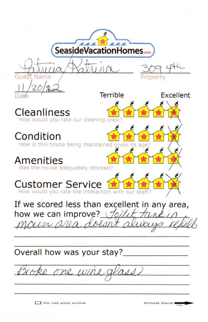 Example: "Is the balcony screened in?" or "Is there a toaster oven?"
