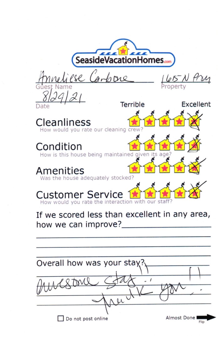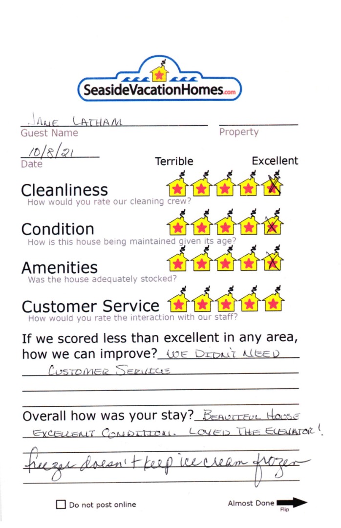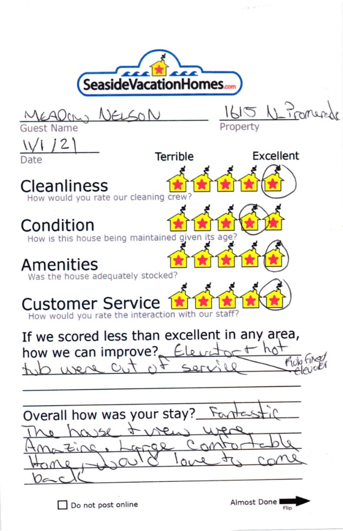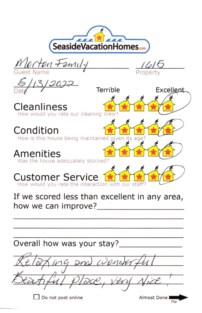 Example: "Is the balcony screened in?" or "Is there a toaster oven?"