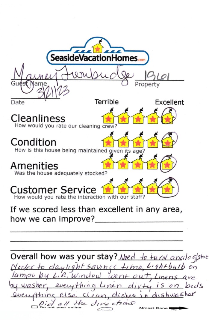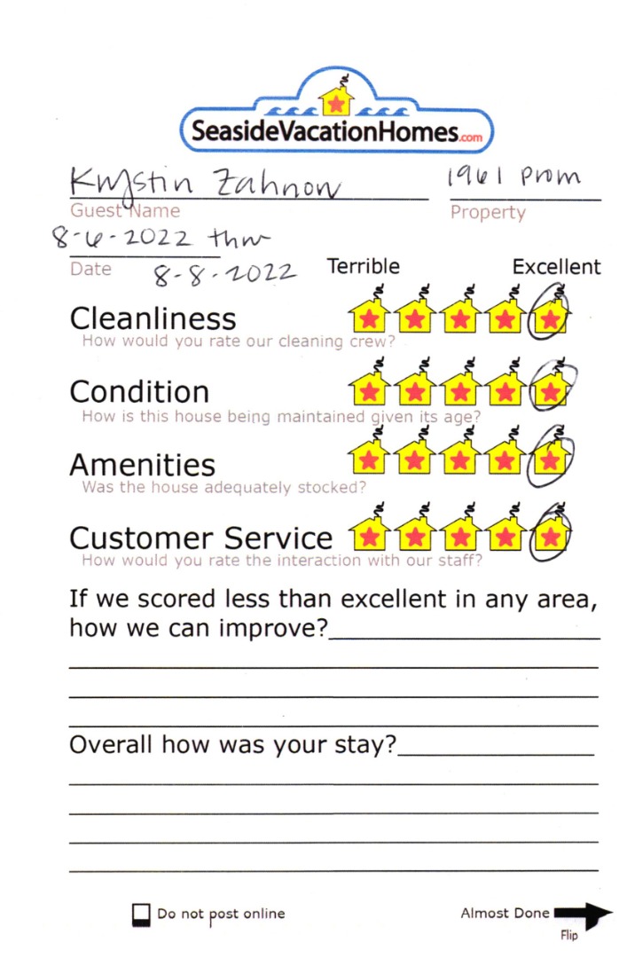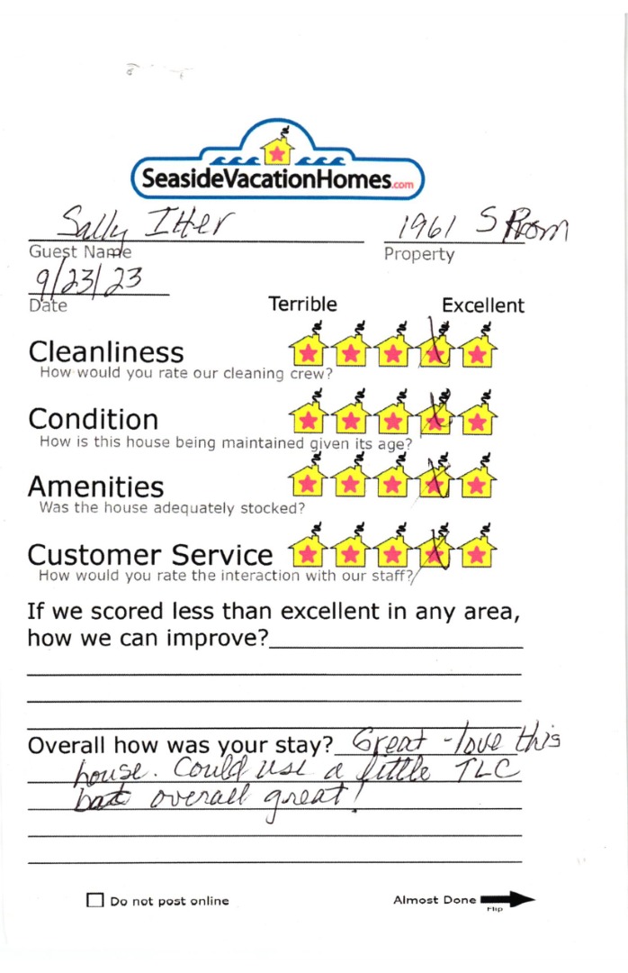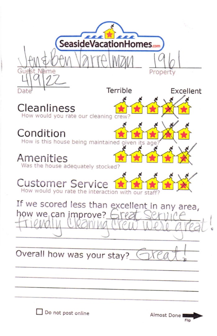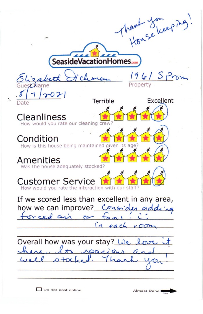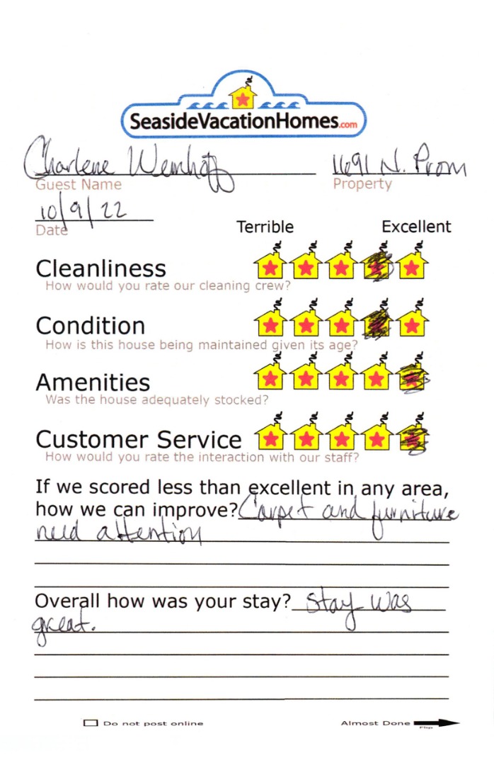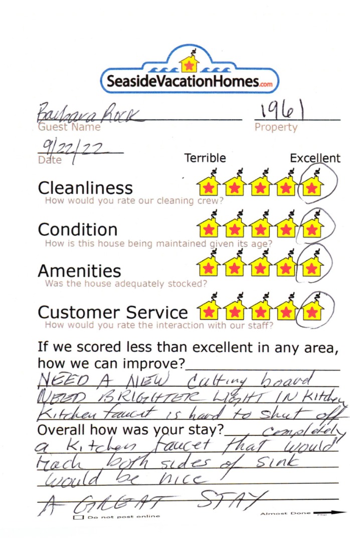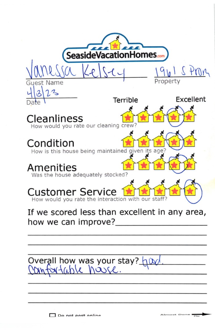 Example: "Is the balcony screened in?" or "Is there a toaster oven?"