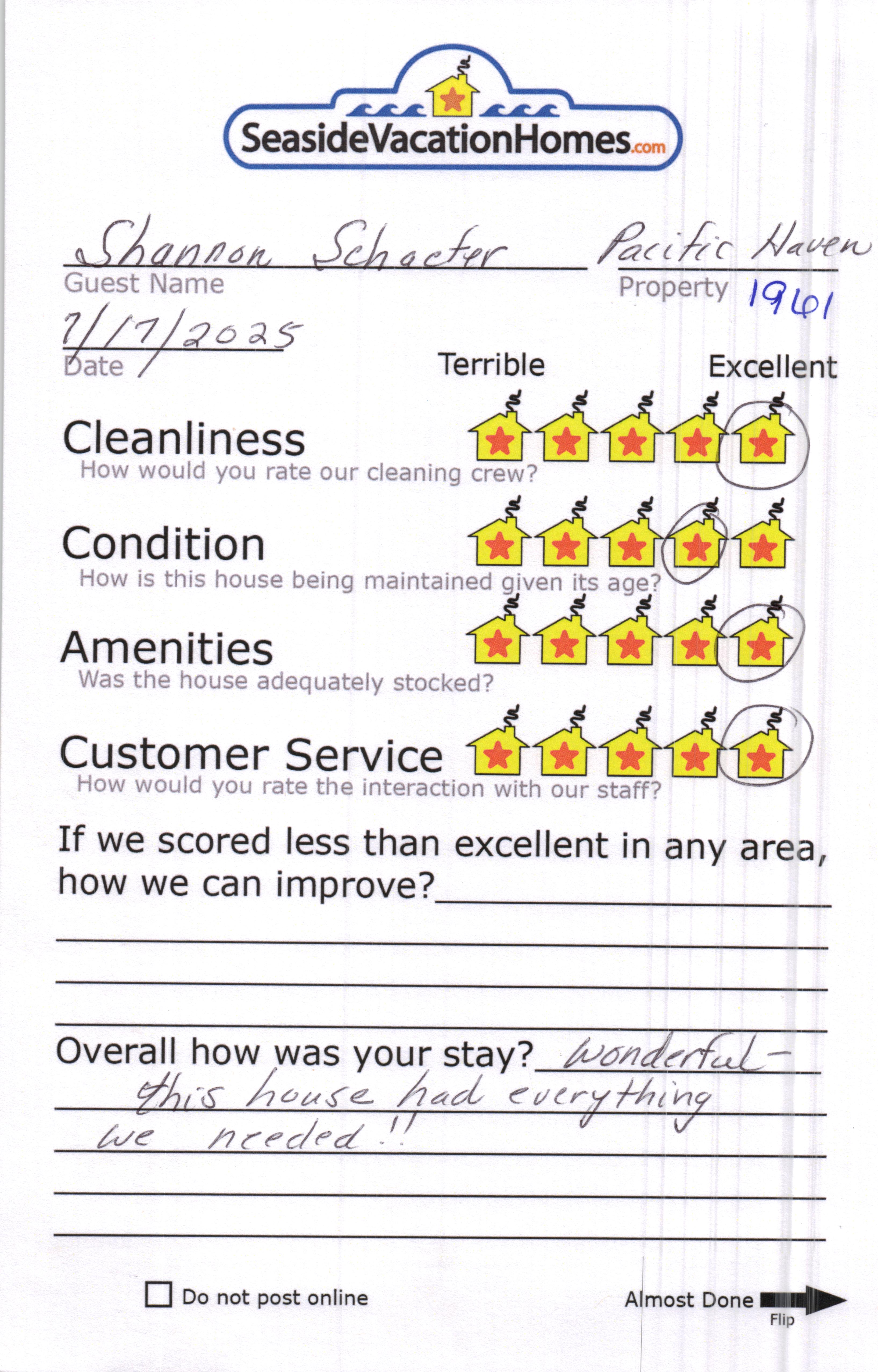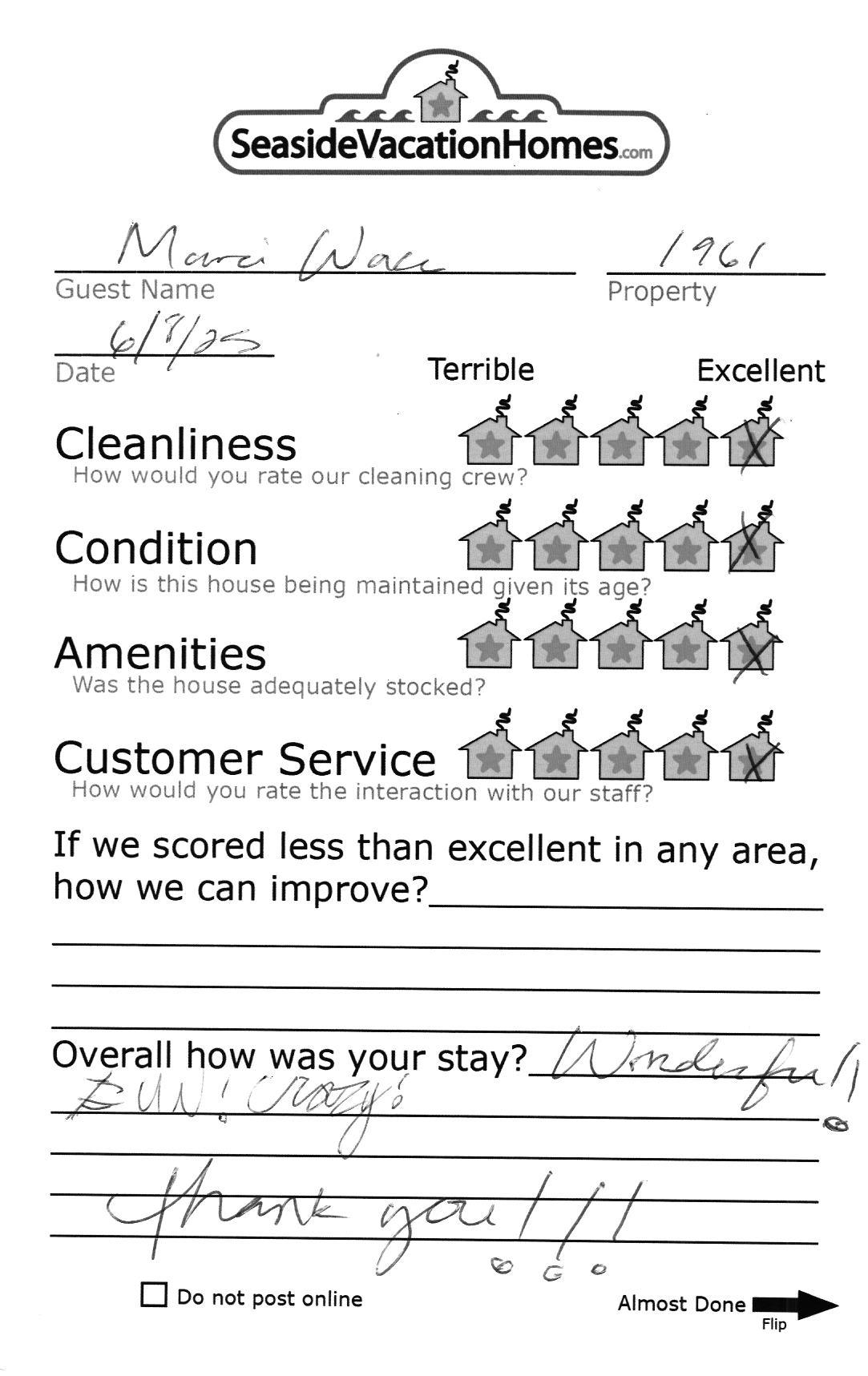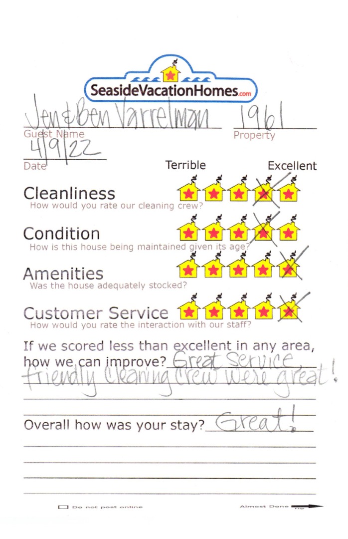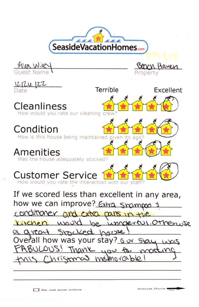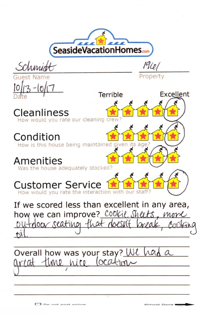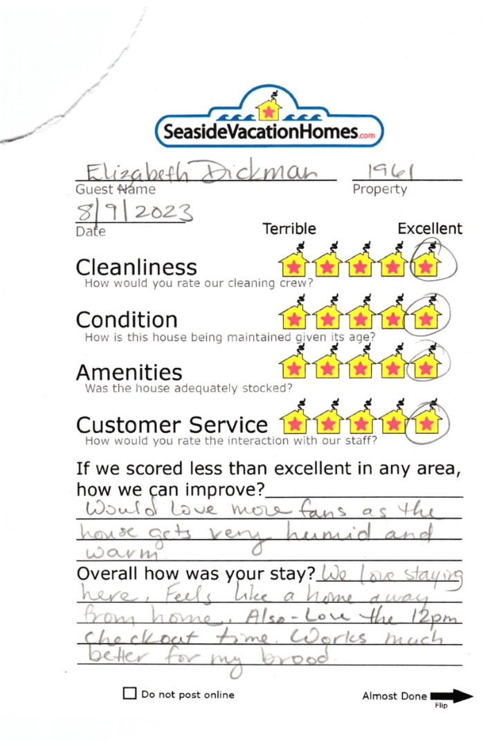 Example: "Is the balcony screened in?" or "Is there a toaster oven?"