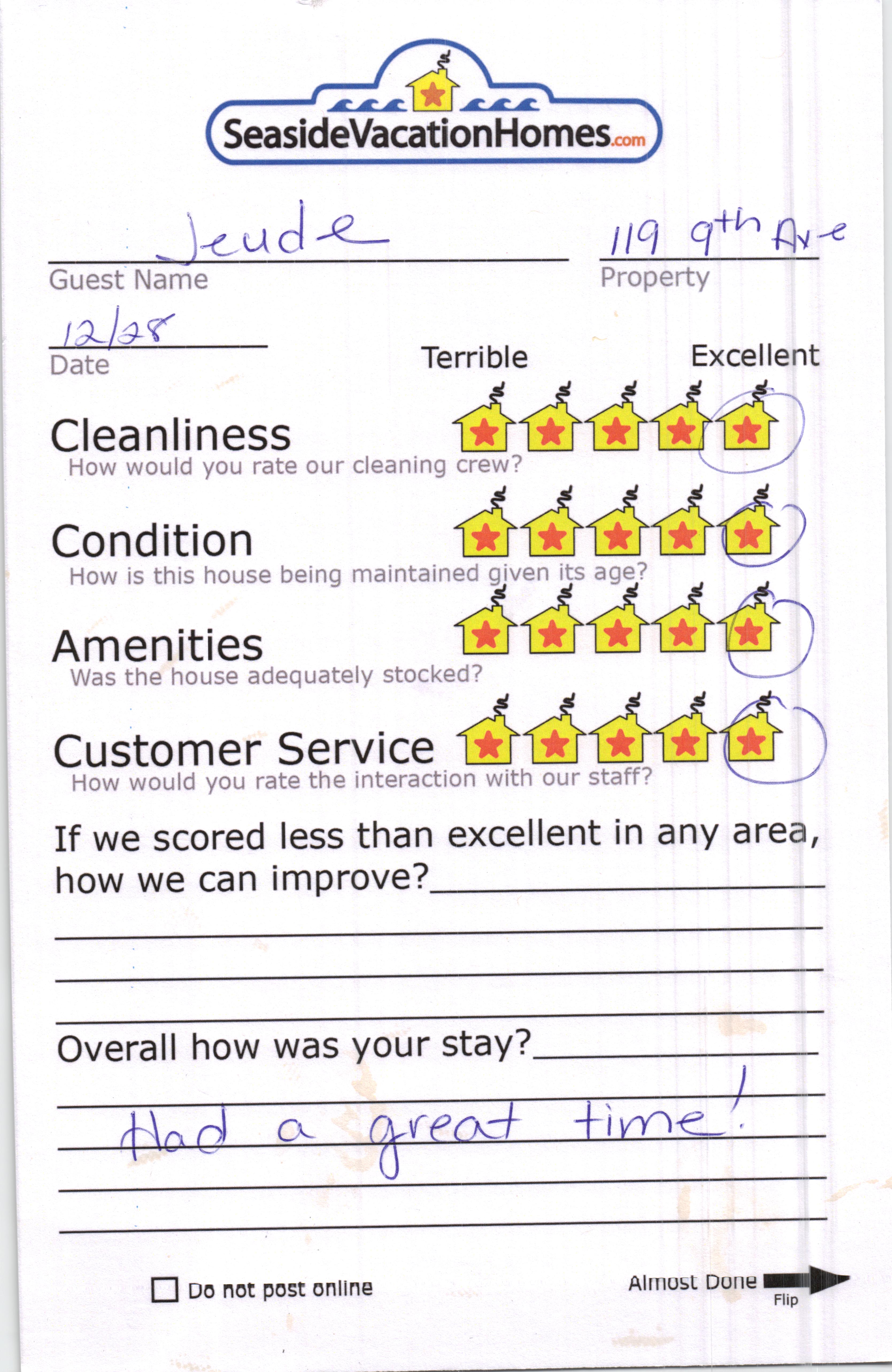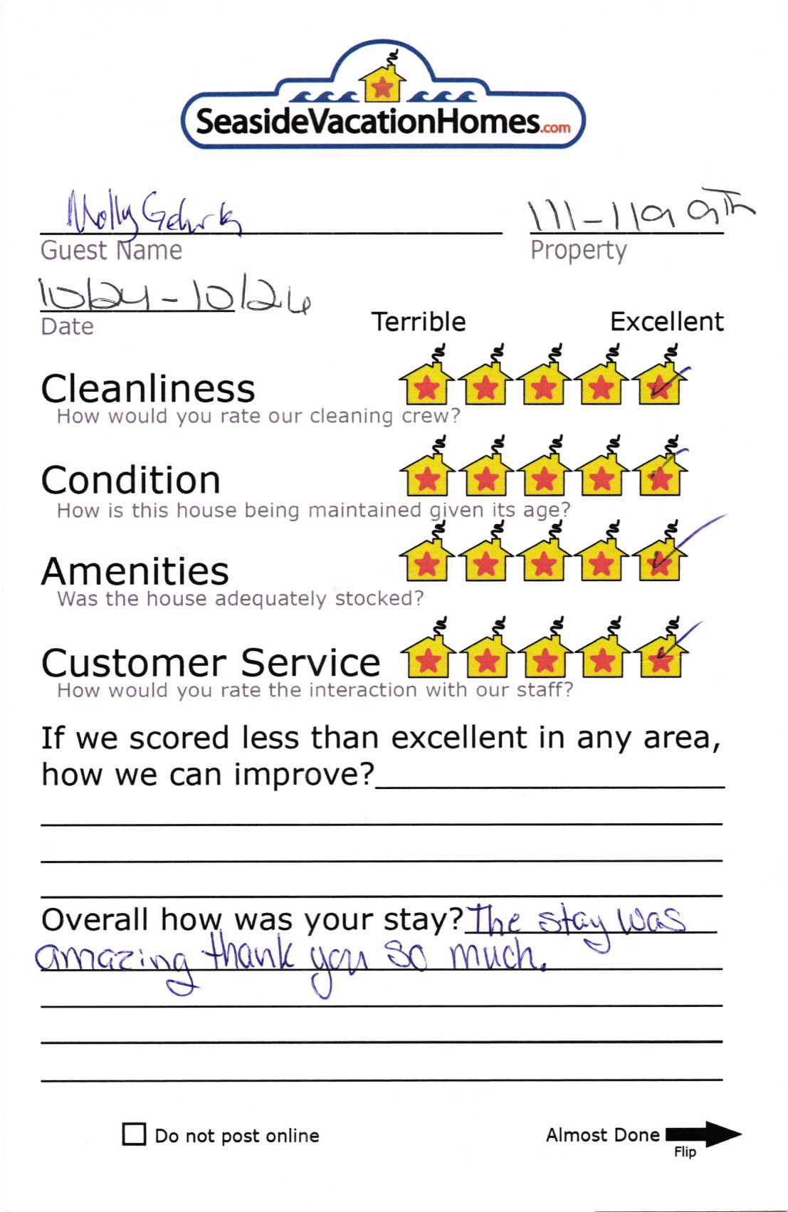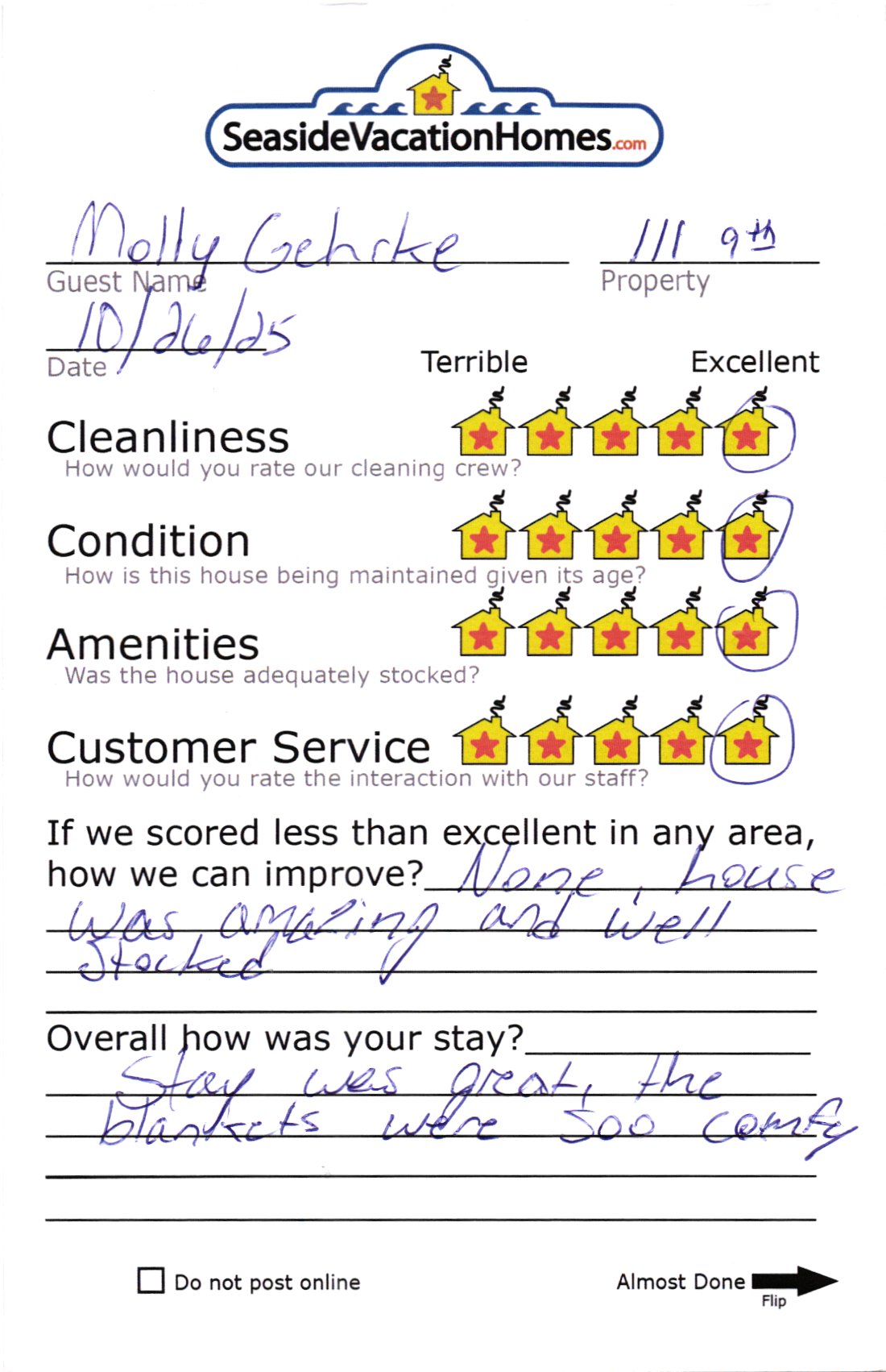 Example: "Is the balcony screened in?" or "Is there a toaster oven?"