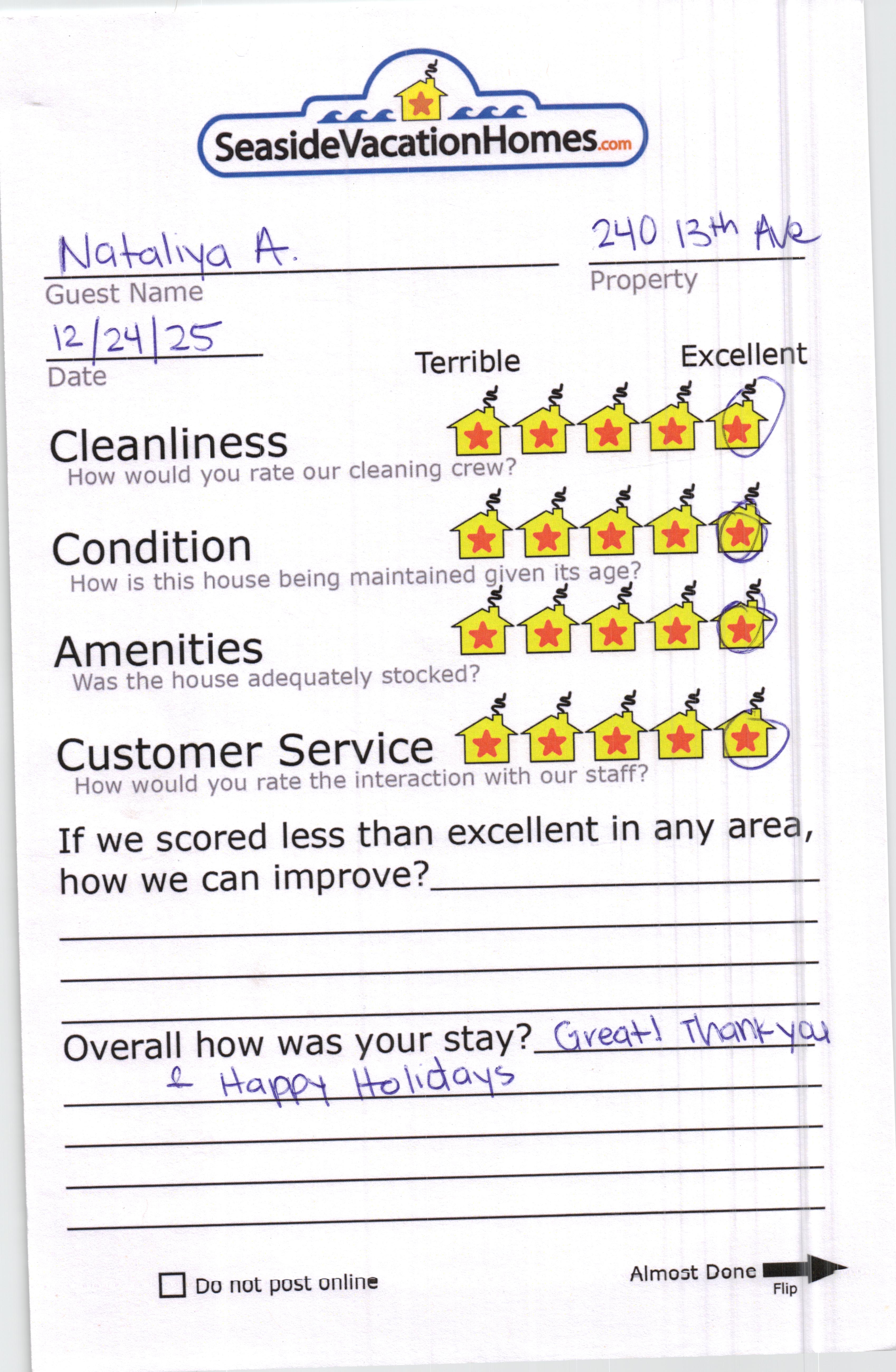 Example: "Is the balcony screened in?" or "Is there a toaster oven?"