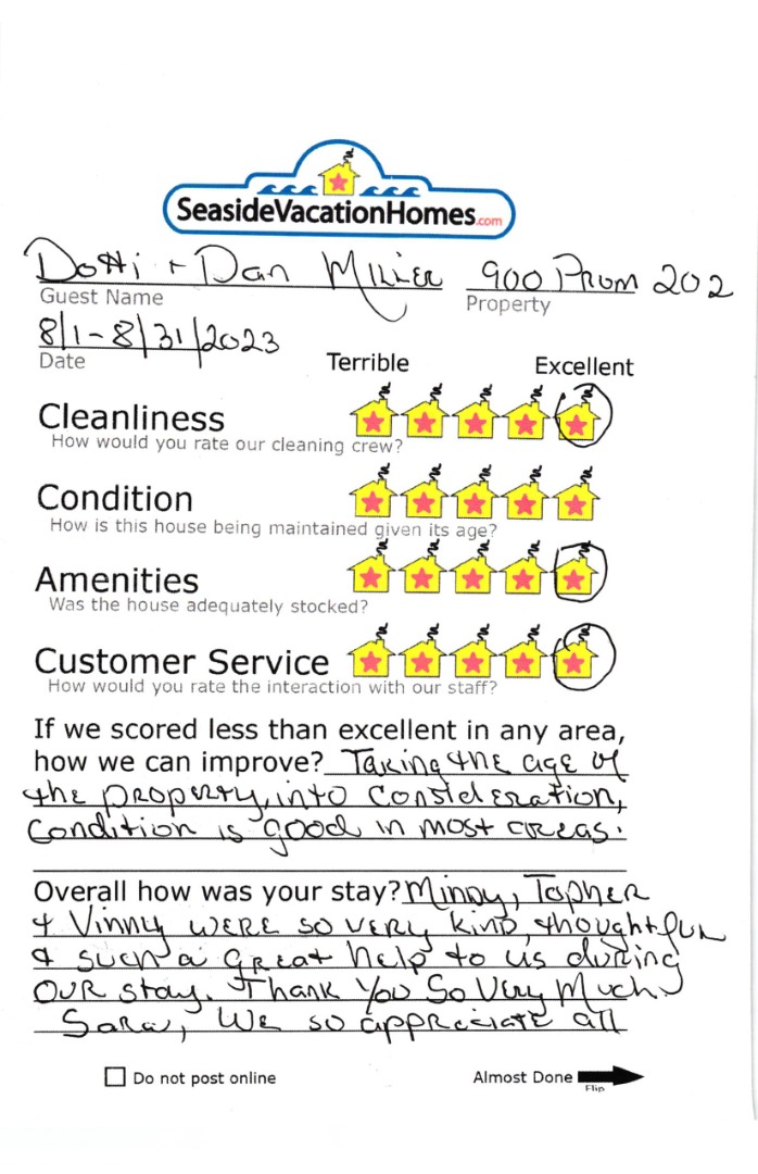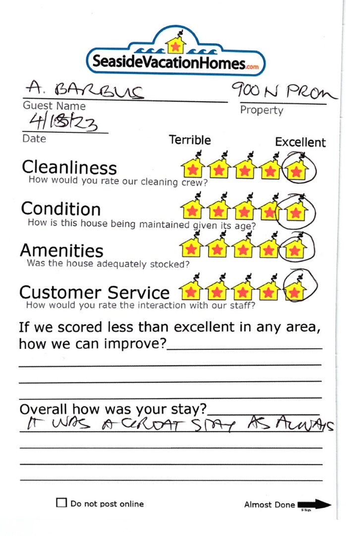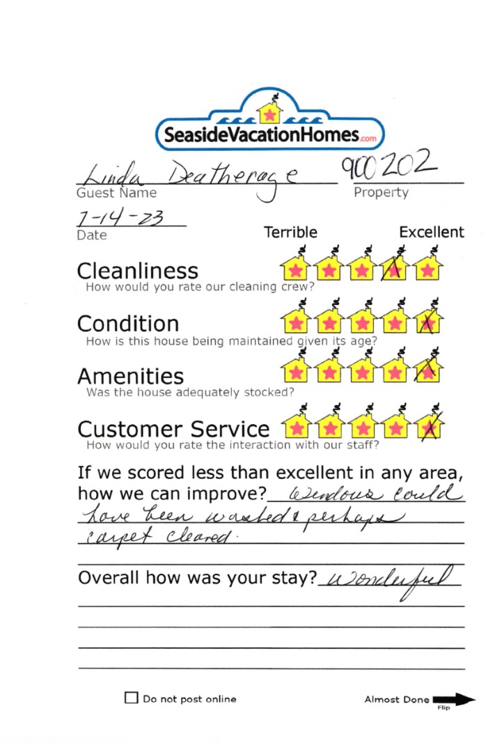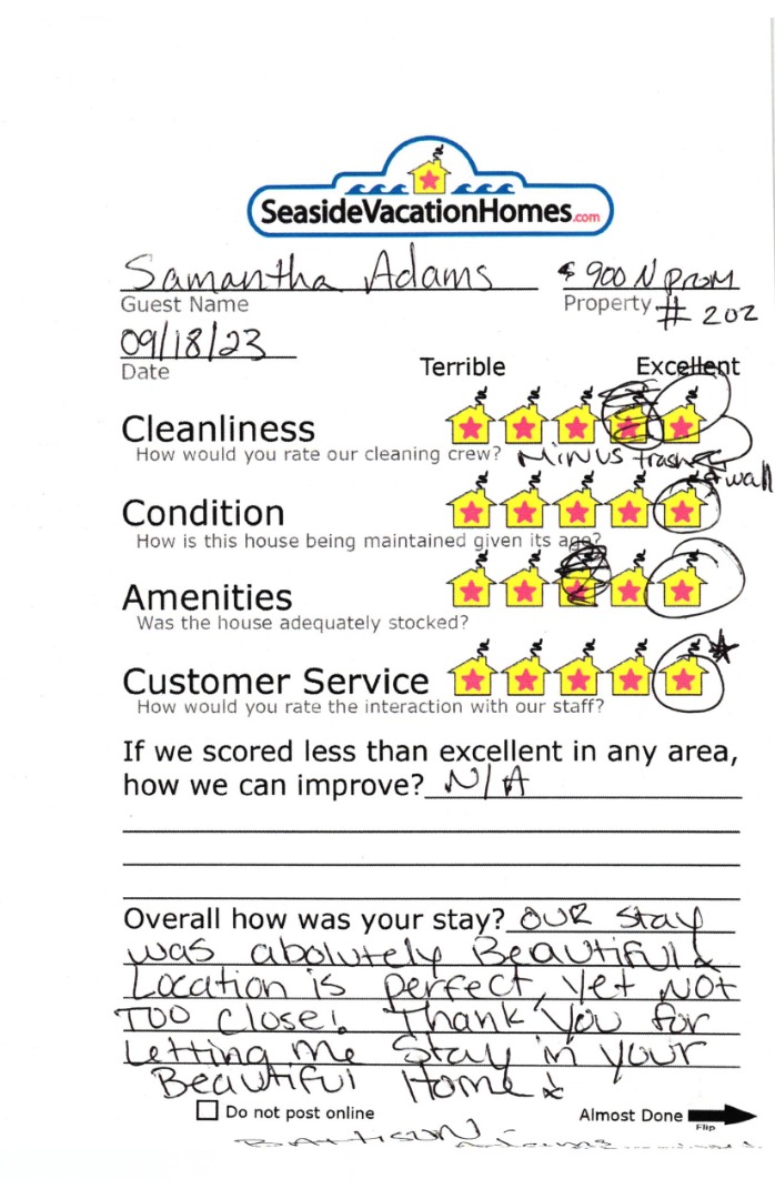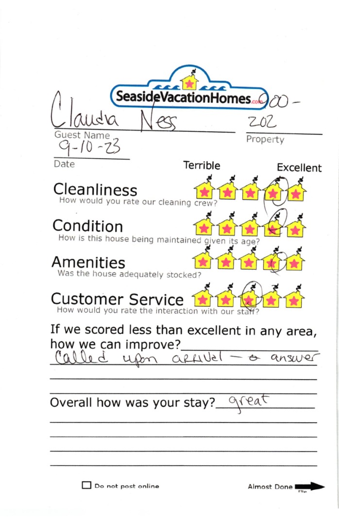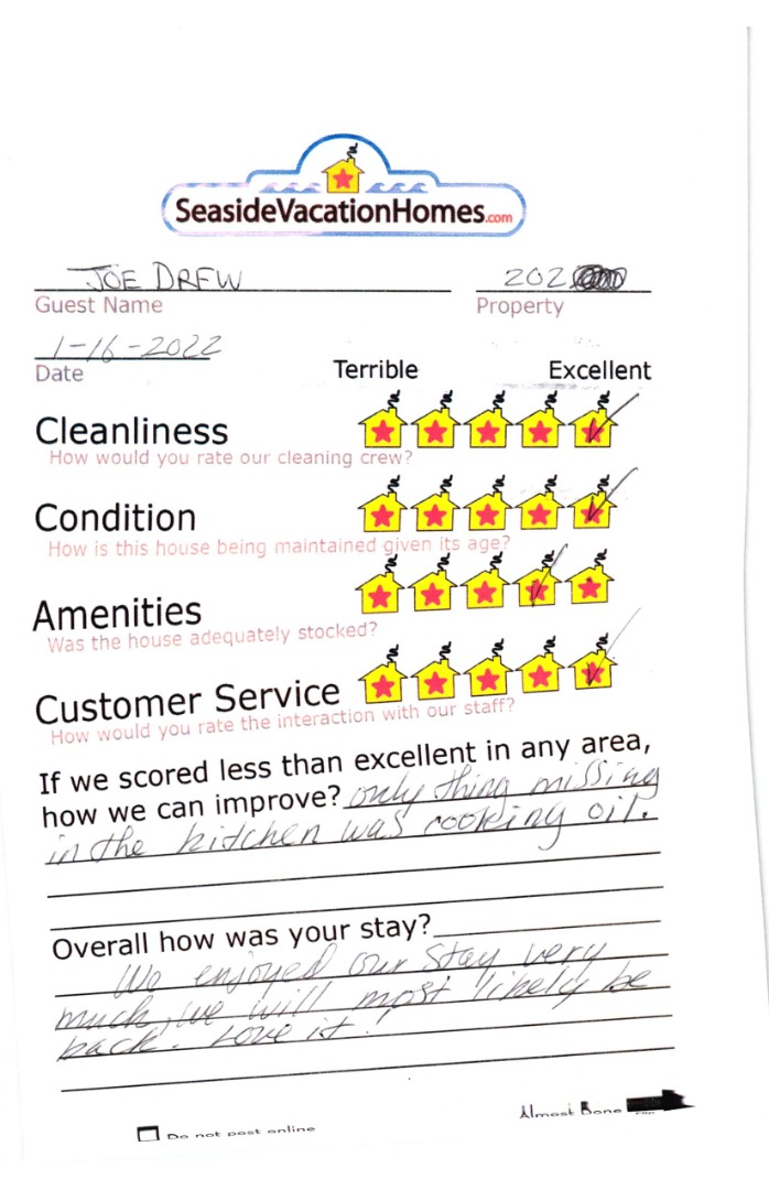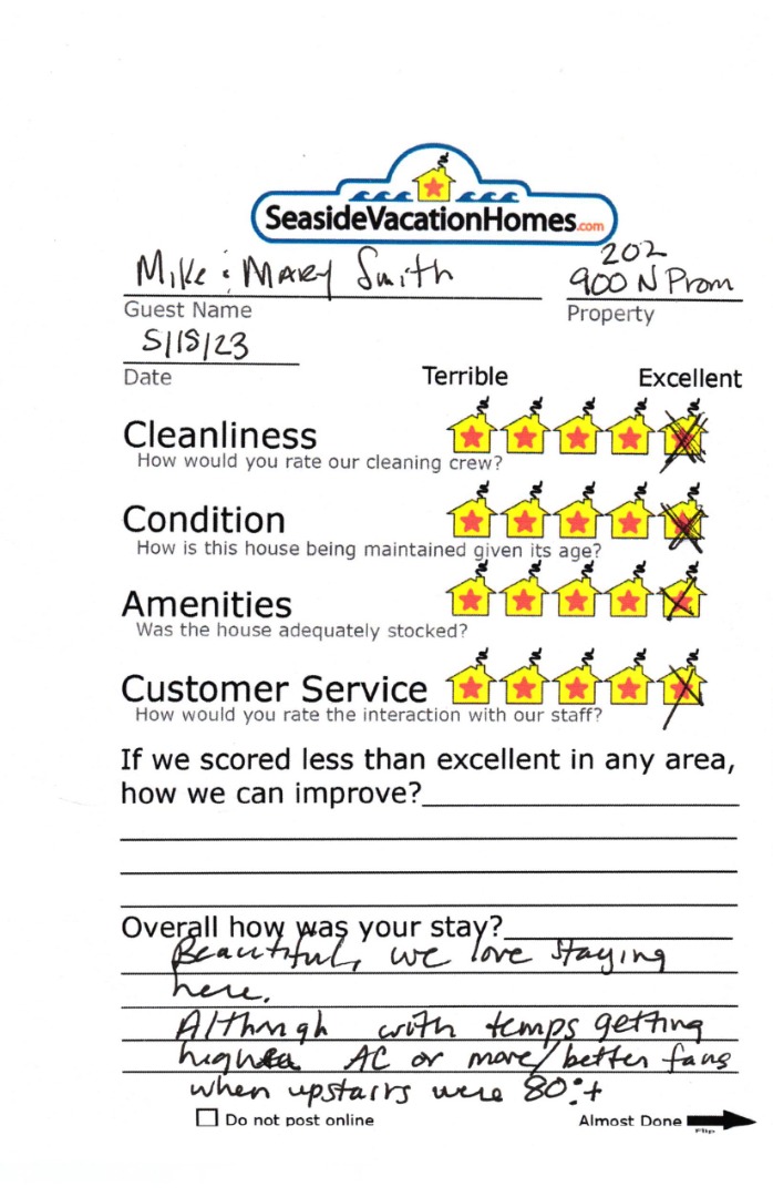 Example: "Is the balcony screened in?" or "Is there a toaster oven?"