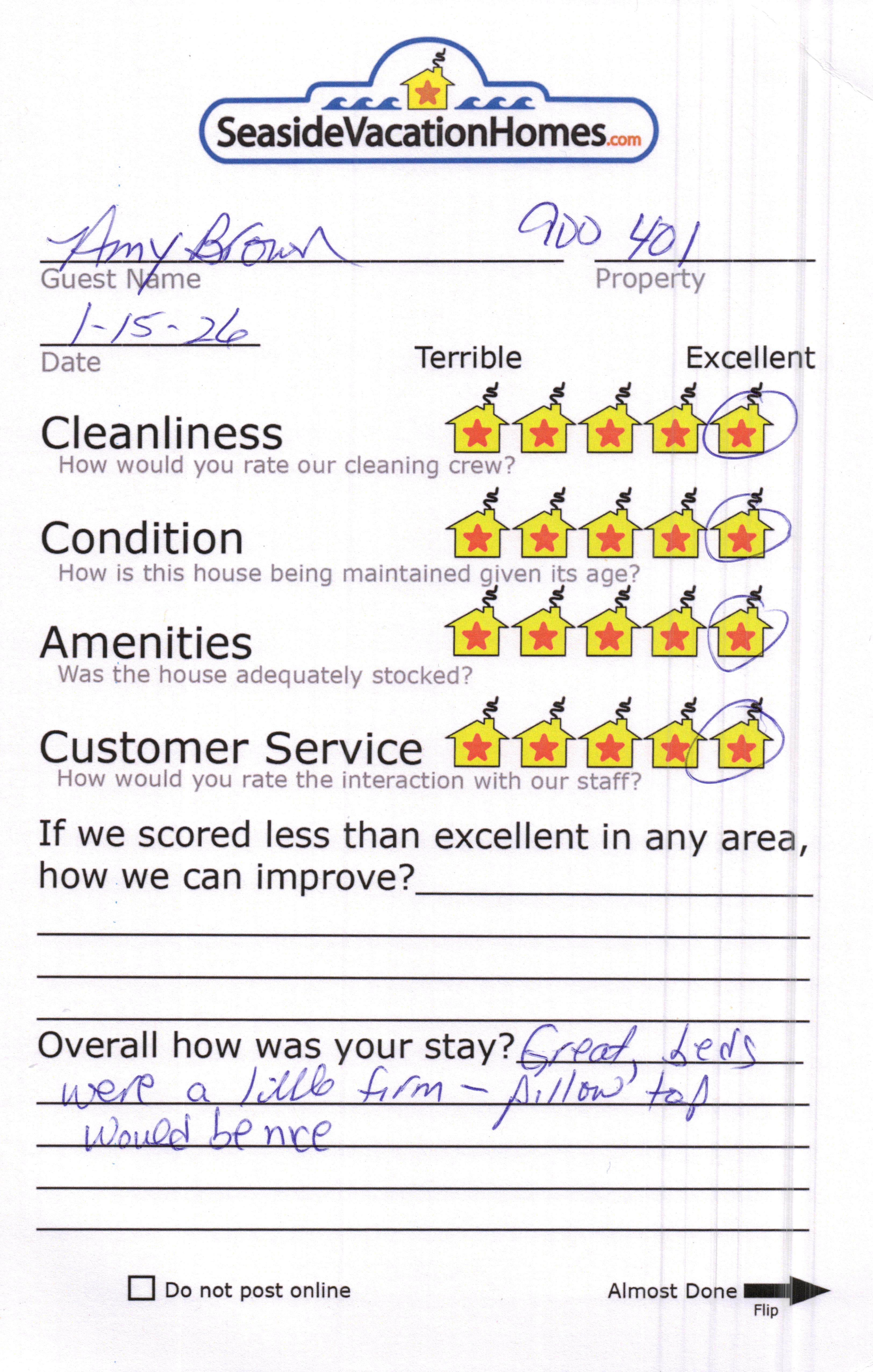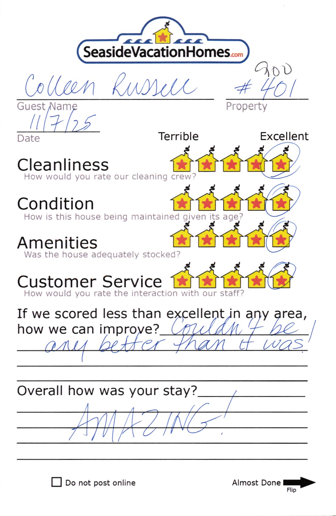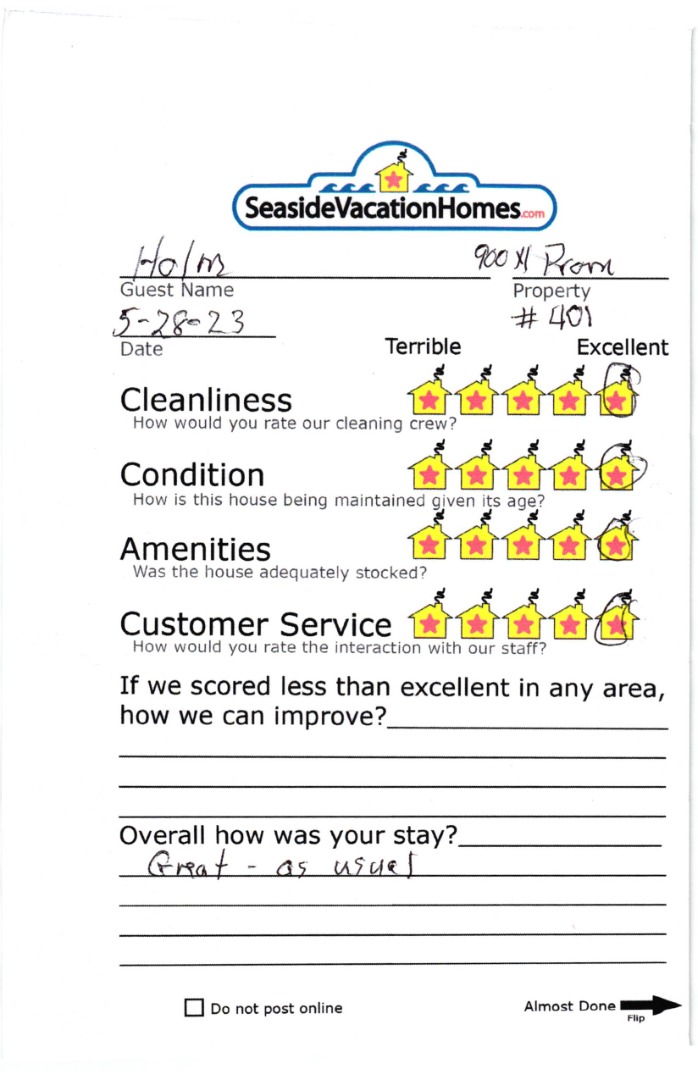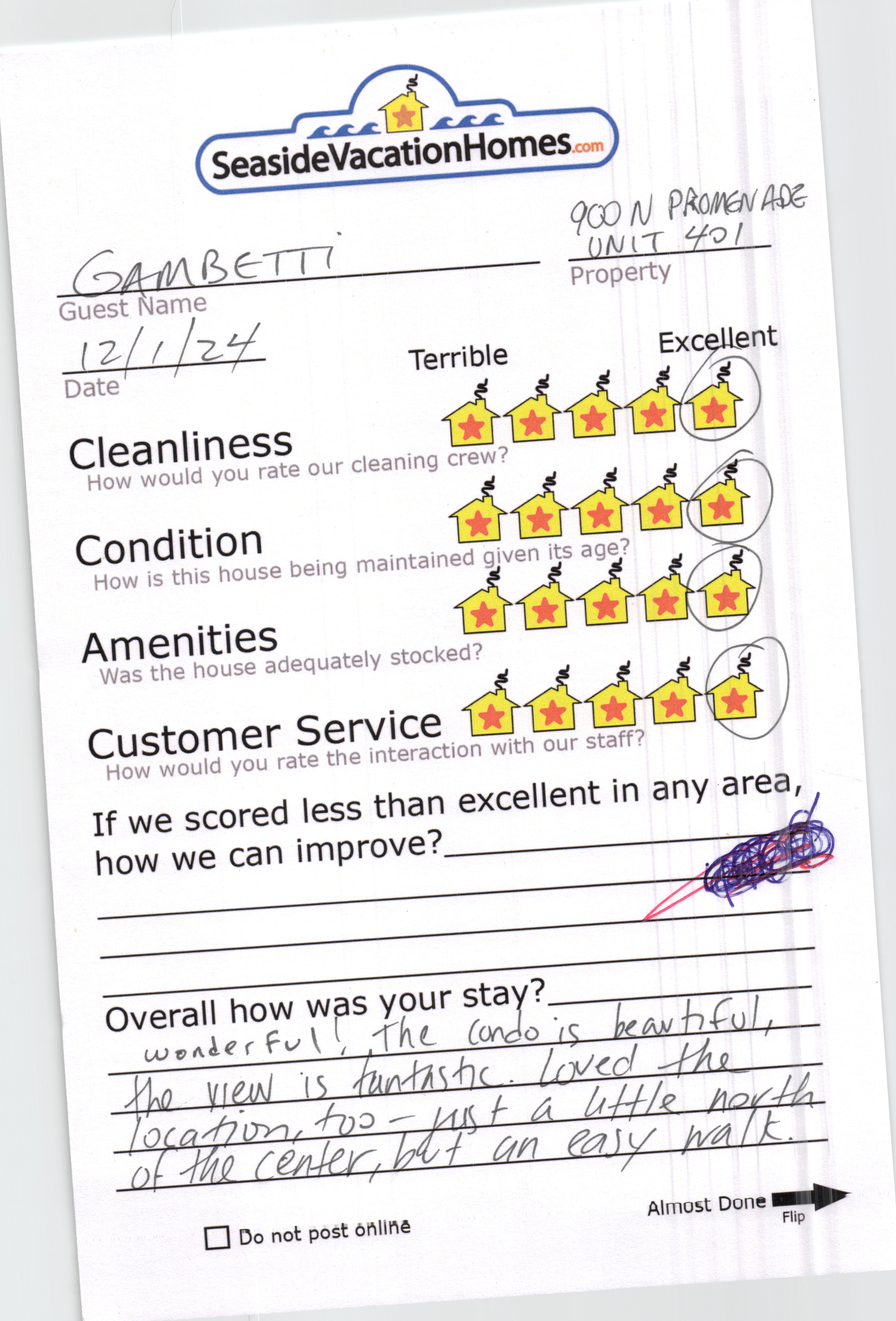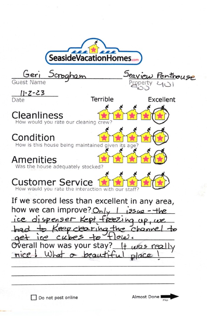 Example: "Is the balcony screened in?" or "Is there a toaster oven?"