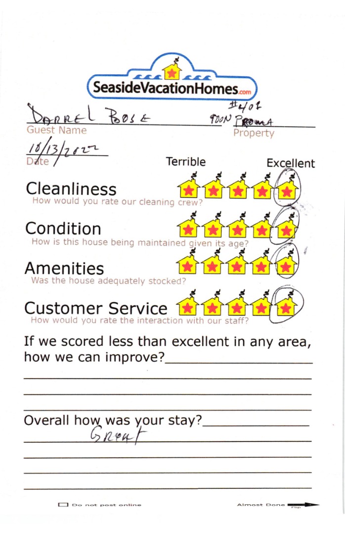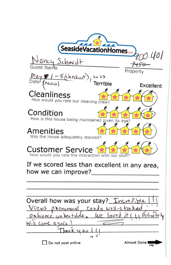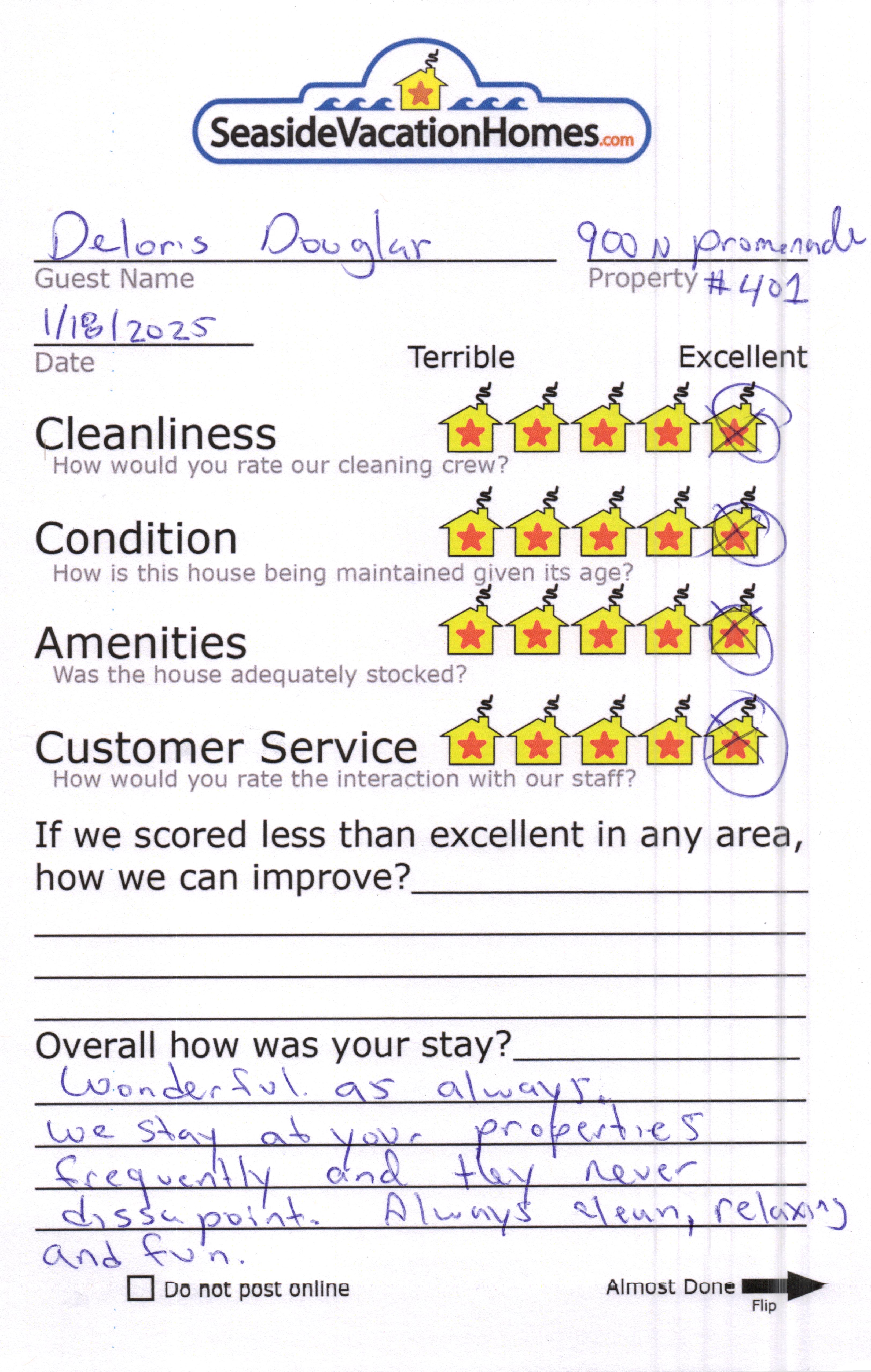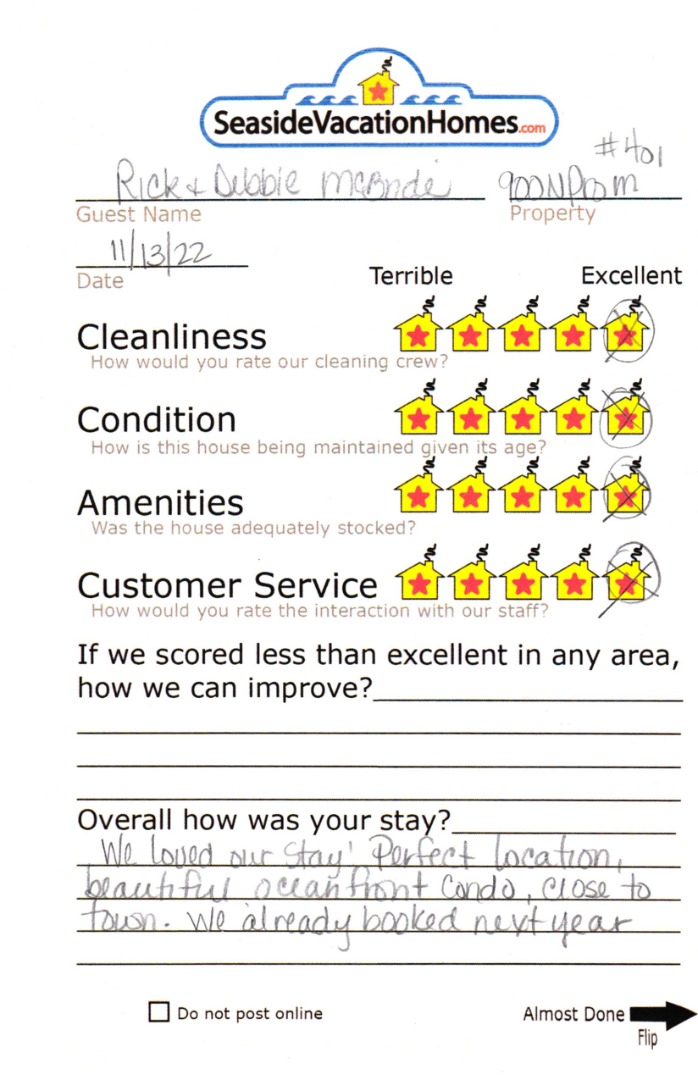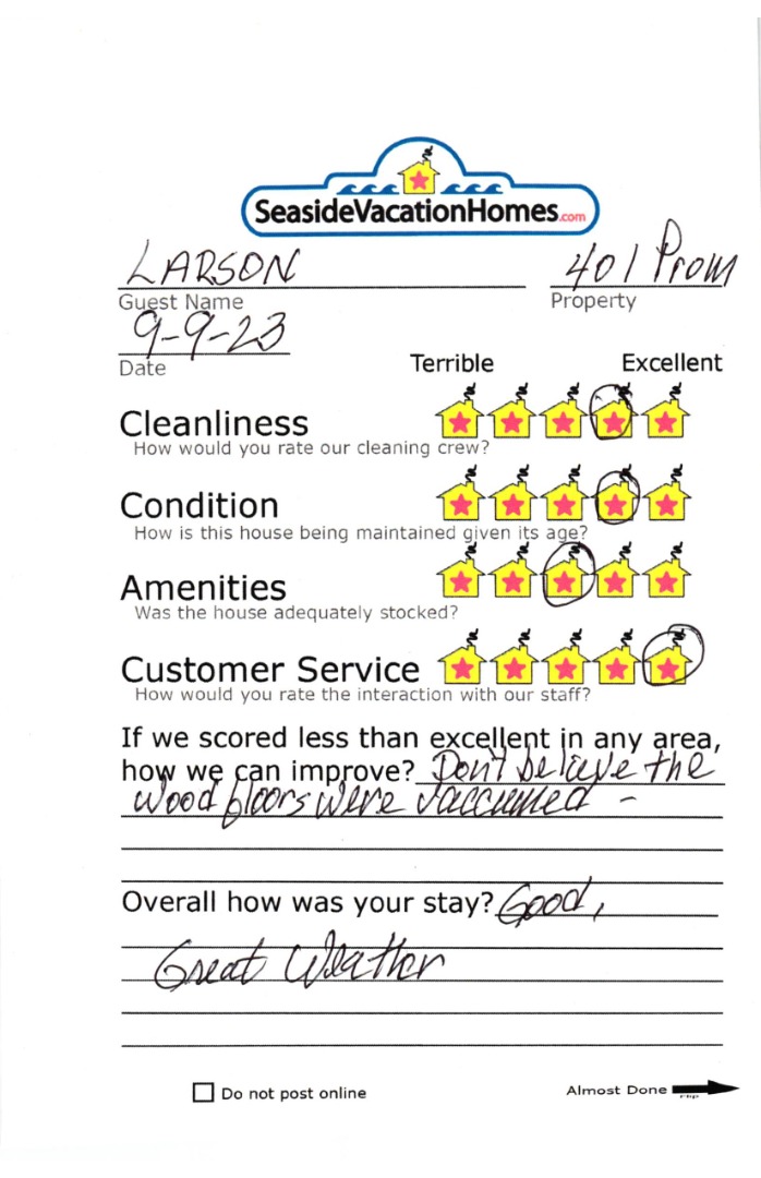 Example: "Is the balcony screened in?" or "Is there a toaster oven?"
