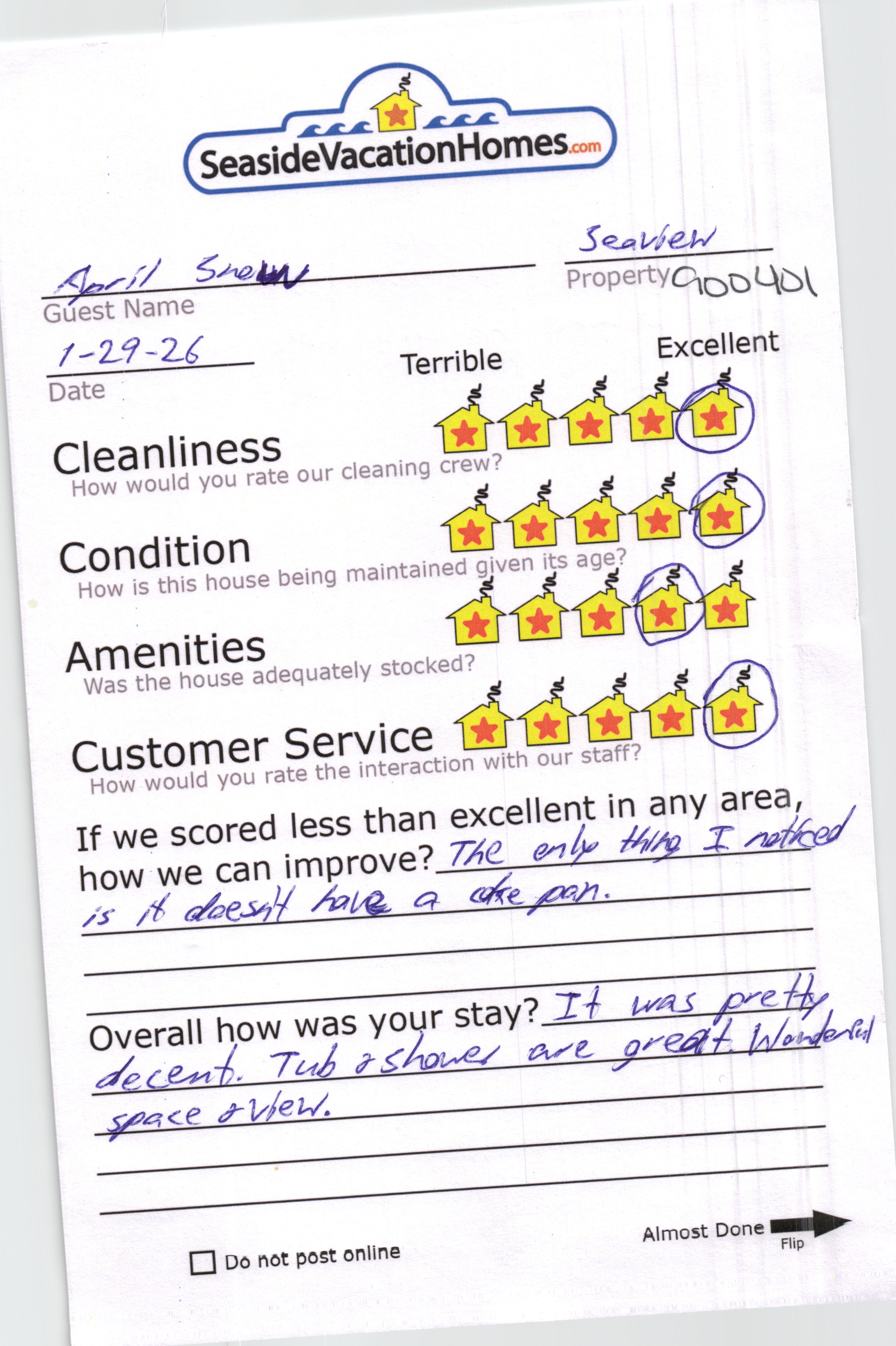 SEAVIEW PENTHOUSE at Seaside Beach: Seaview Condominiums is an ocean front luxury property in Seaside. Offering high end amenities. This two bedroom oceanfront Penthouse Unit is located on the fourth floor giving guests a breathtaking view of the coastline stretching from Washington to Tillamook Head along with vaulted ceilings and more windows then lower level units. The master bedroom has a King bed and it's own private bathroom. The other room is a Queen bed. The living room has a sleeper sofa. Elevator access is just steps away from this unit and of course the beach is directly in front of the building. Also located on the north end of the prom you are only a 10 min walk from Broadway and all the dining and fun that downtown has to offer. Keep in mind the additional cleaning charge ensures that your house will be spotless upon arrival and that you will not be asked to spend more than 5 min on the check out procedure. See policies for more booking information.