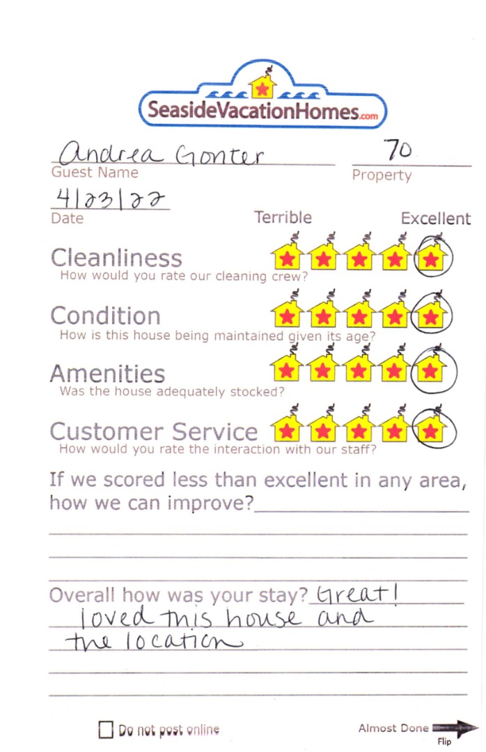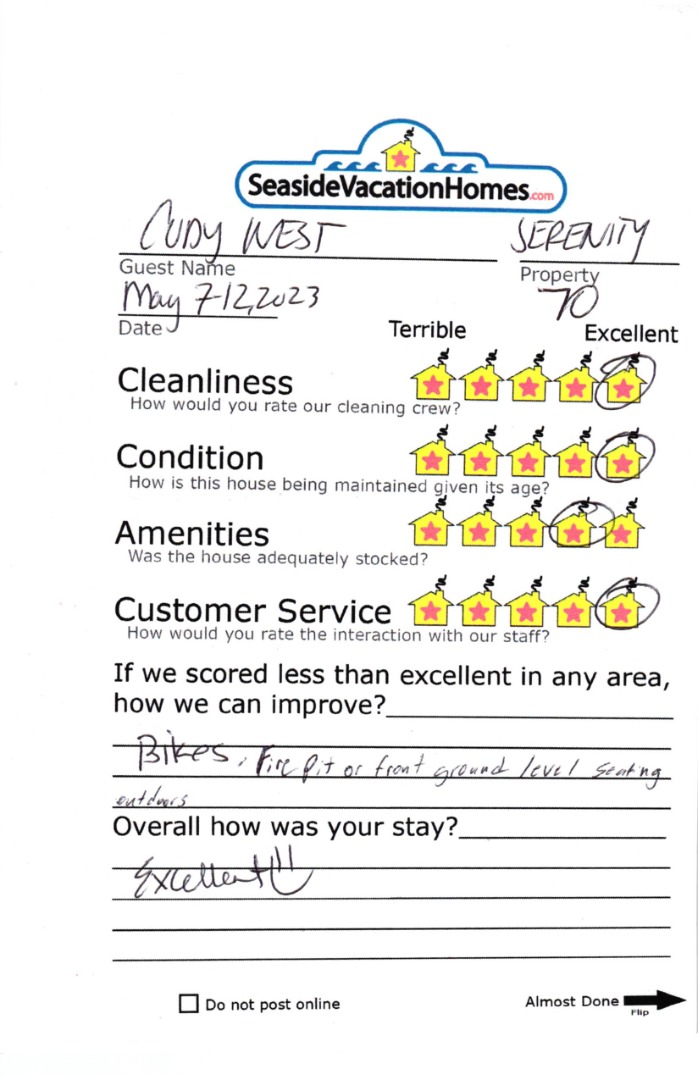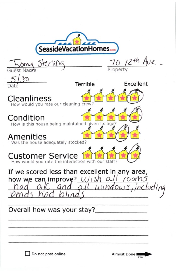 Example: "Is the balcony screened in?" or "Is there a toaster oven?"