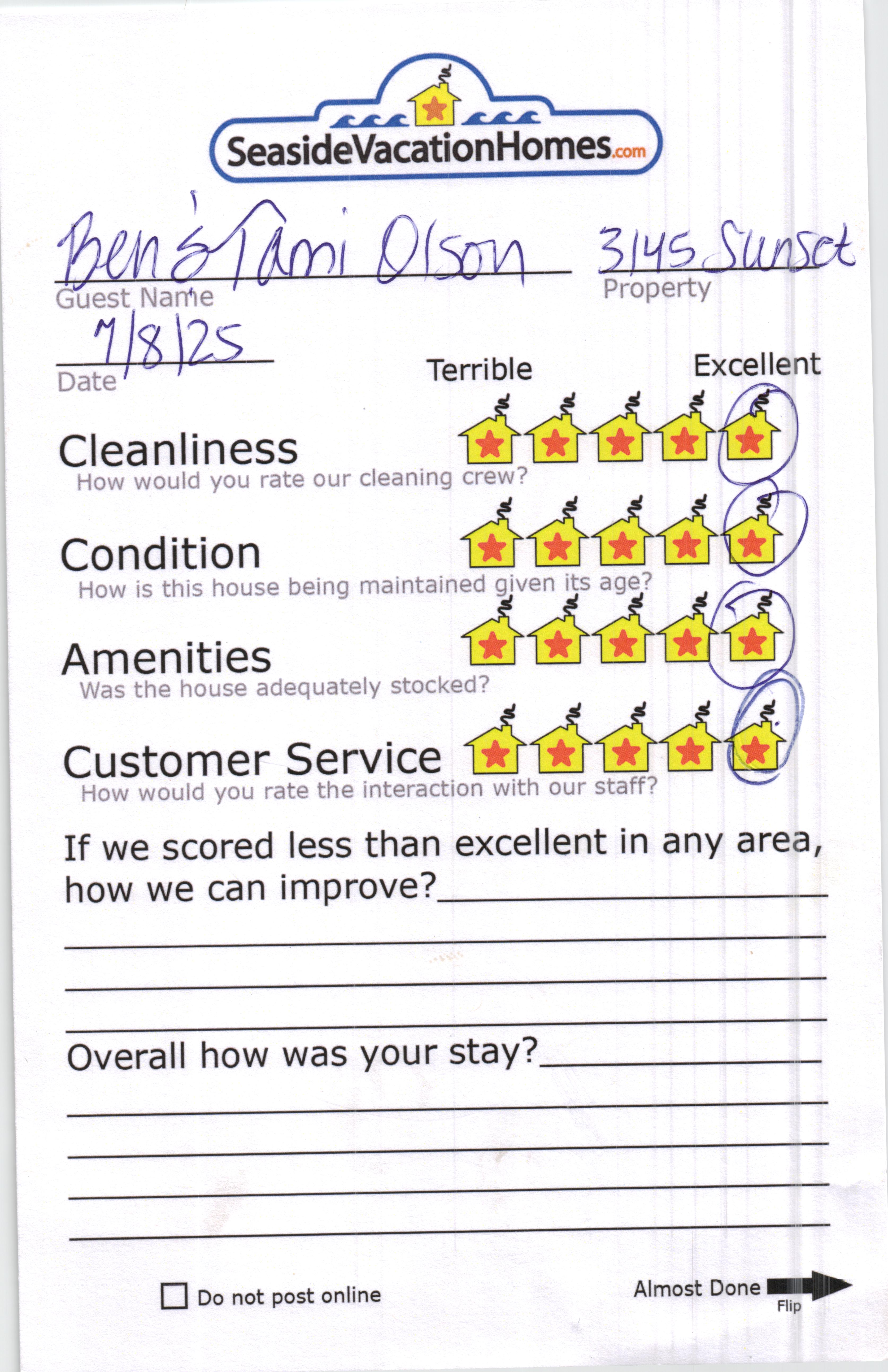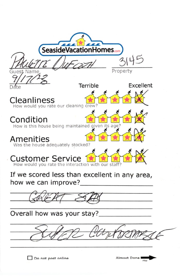Example: "Is the balcony screened in?" or "Is there a toaster oven?"