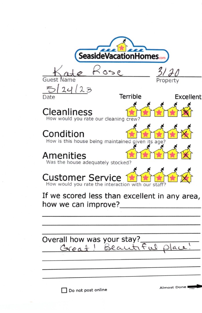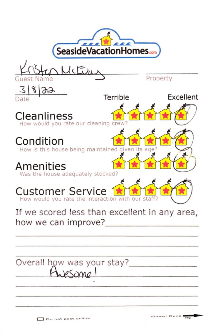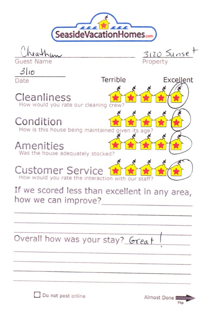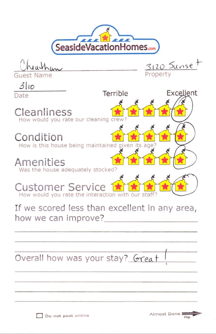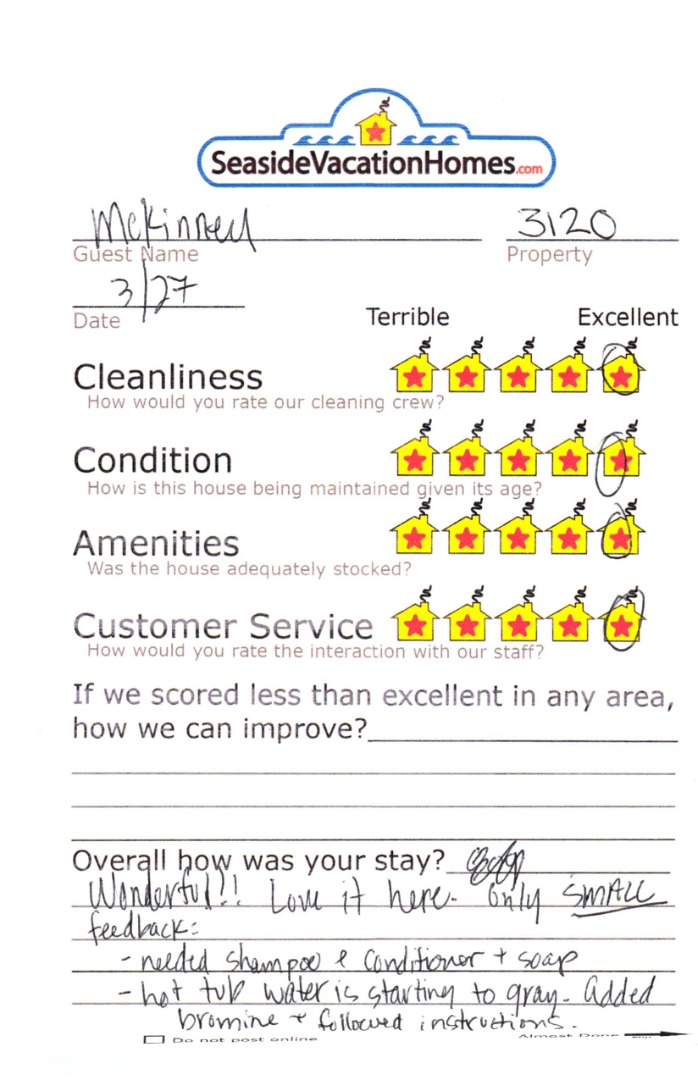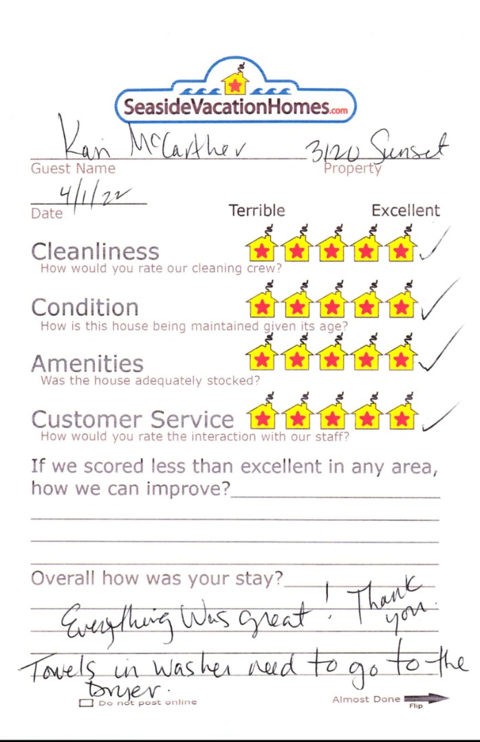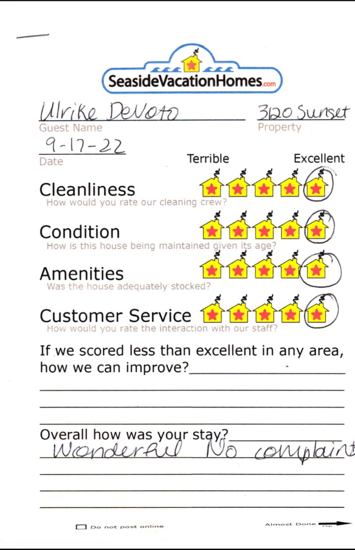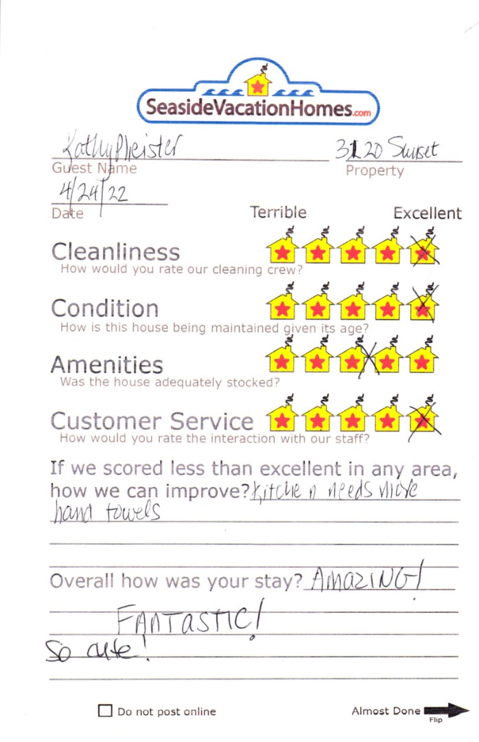 Example: "Is the balcony screened in?" or "Is there a toaster oven?"