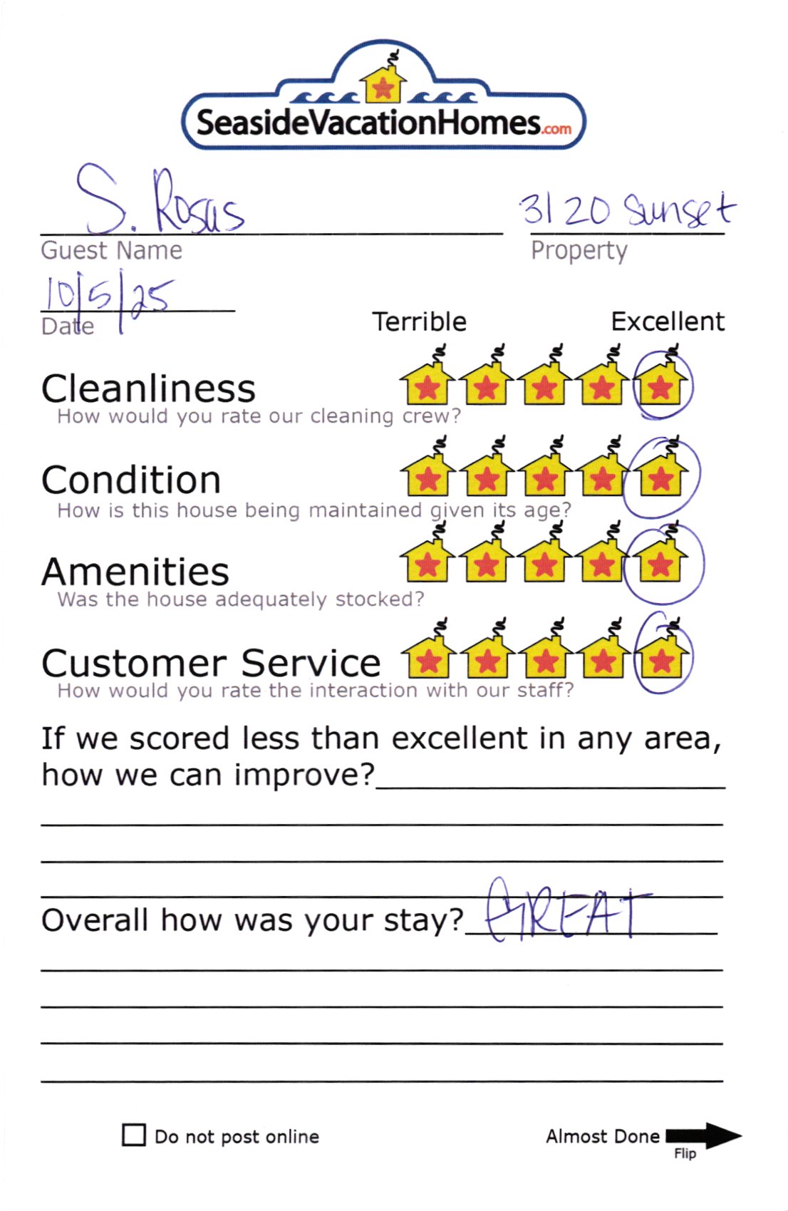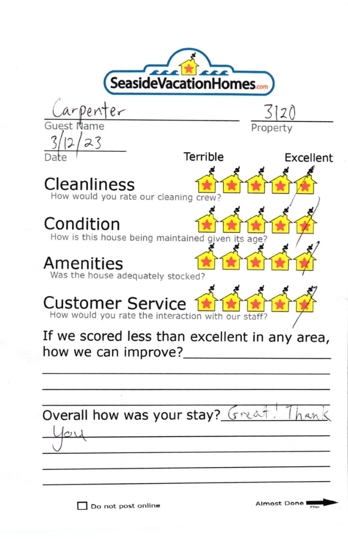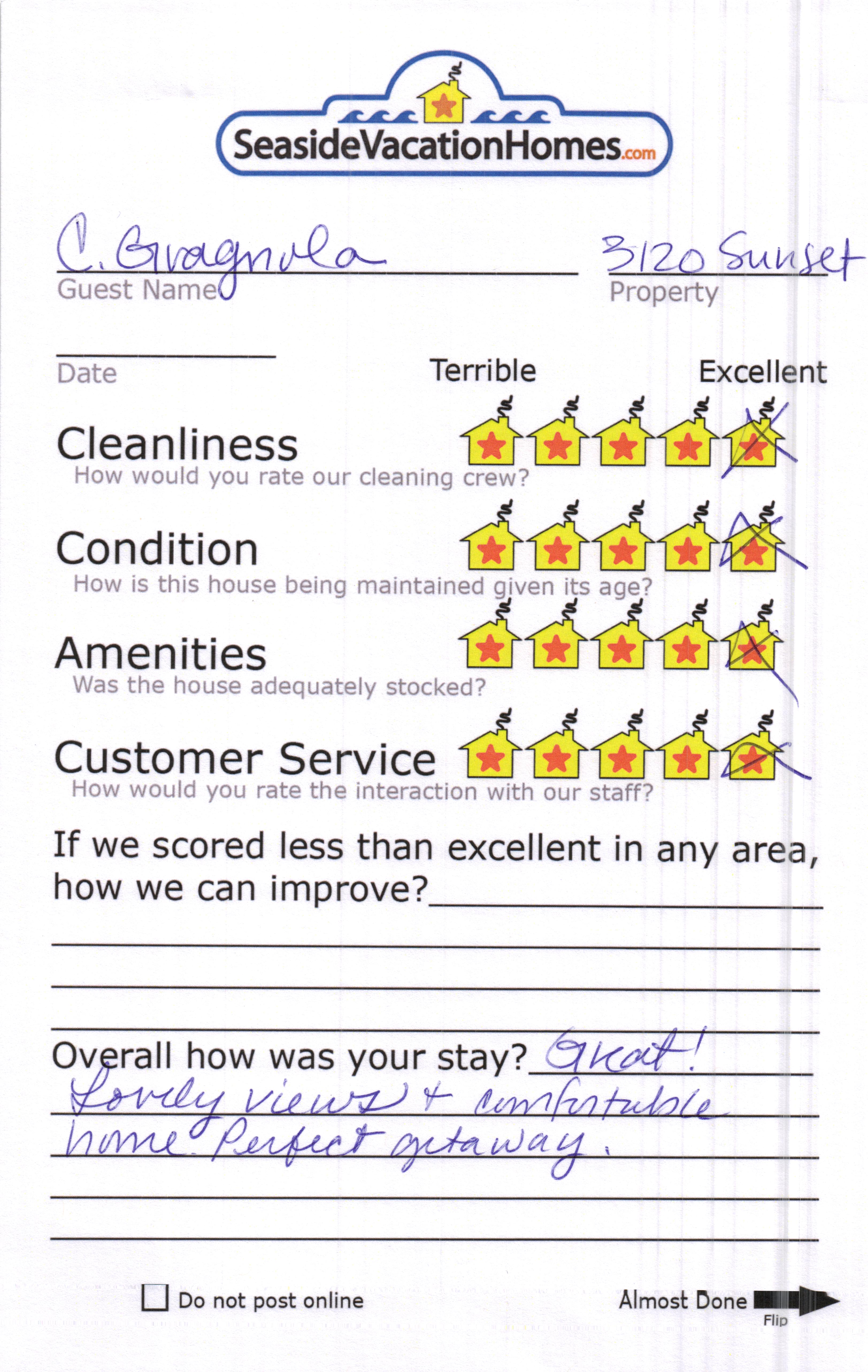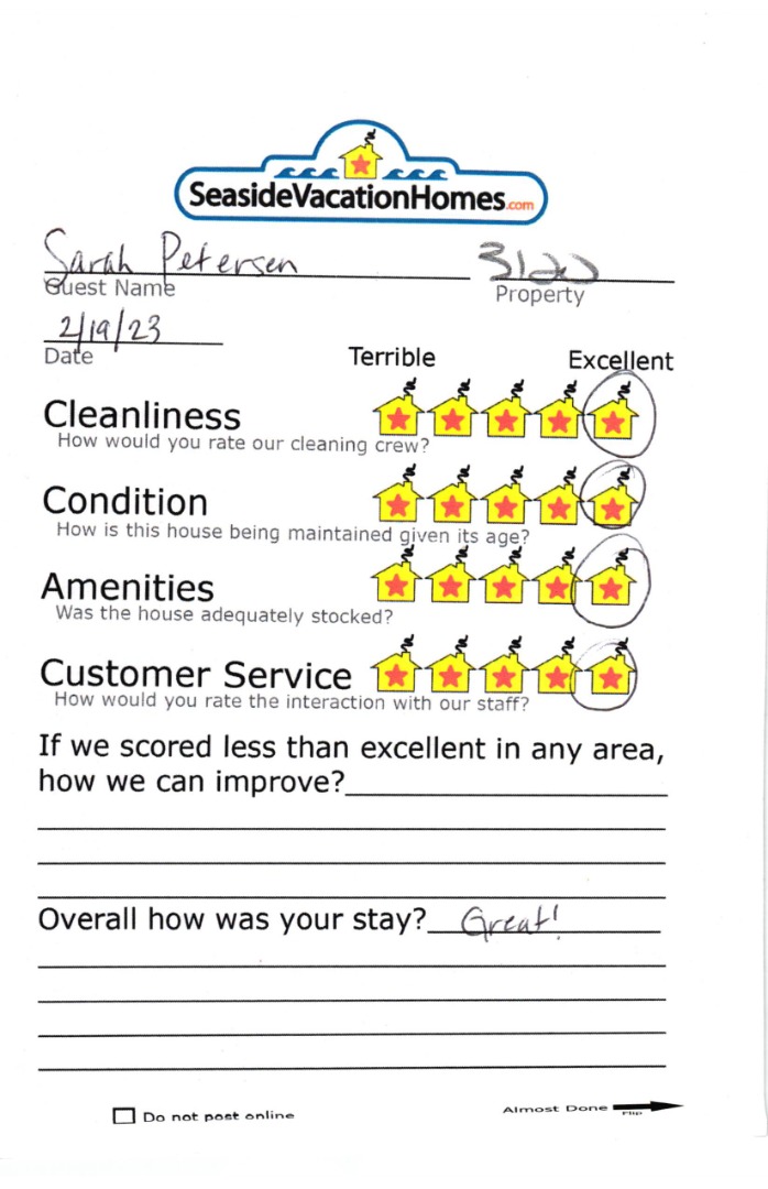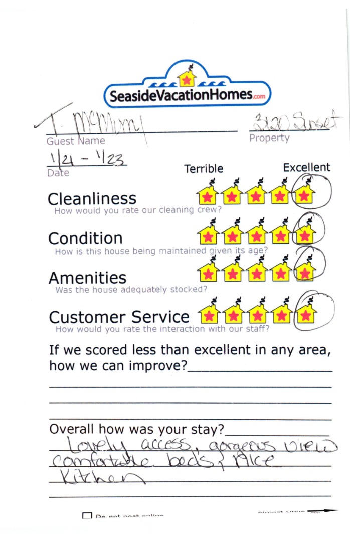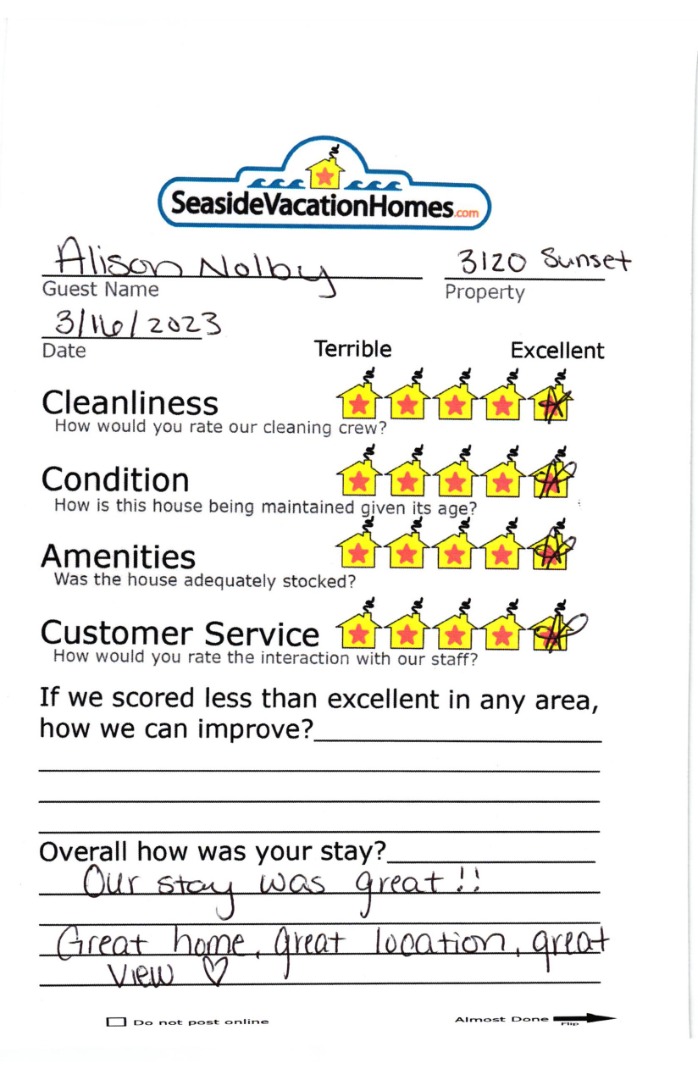 Example: "Is the balcony screened in?" or "Is there a toaster oven?"
