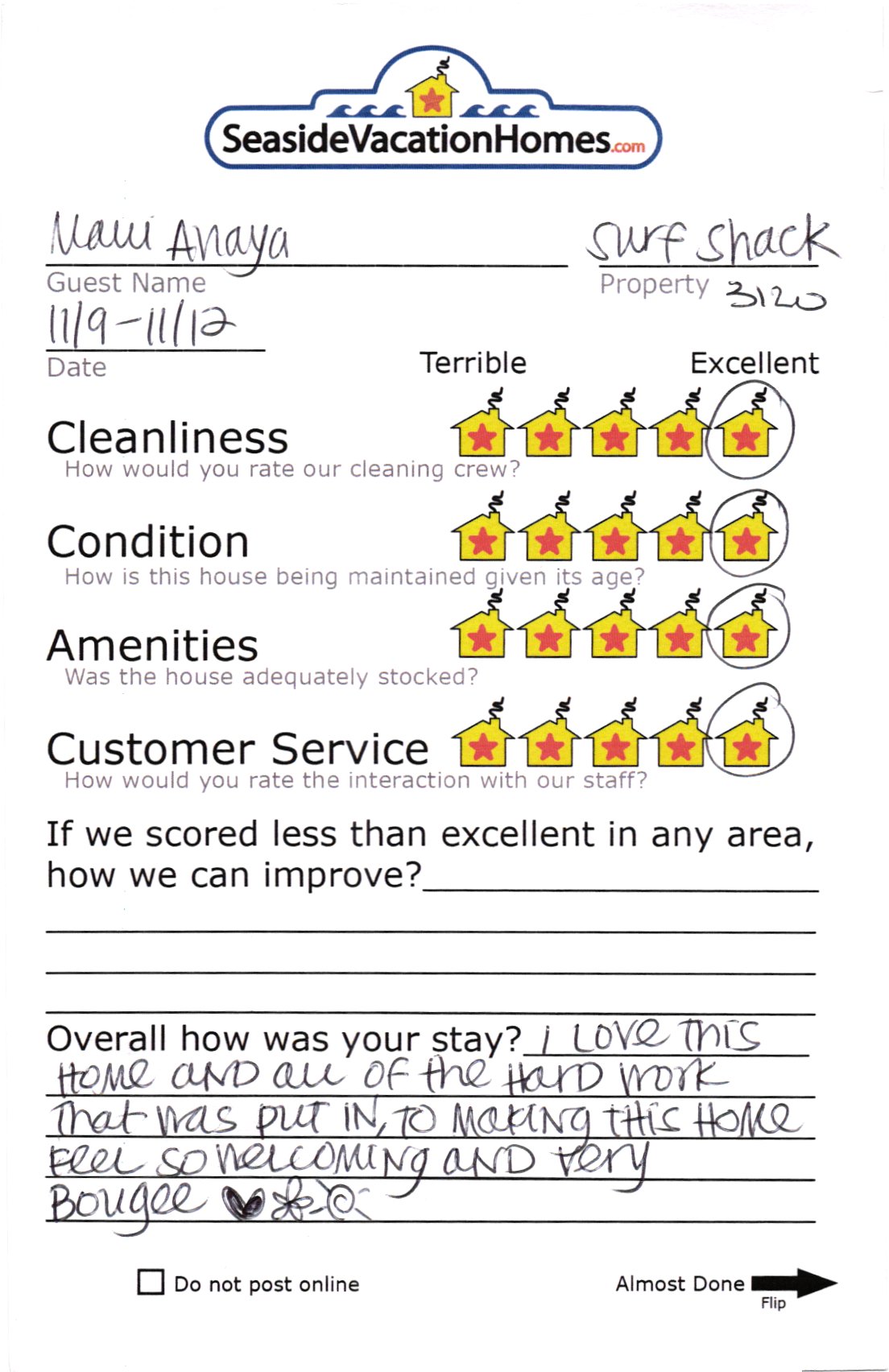 | Start Date | End Date | Nightly |