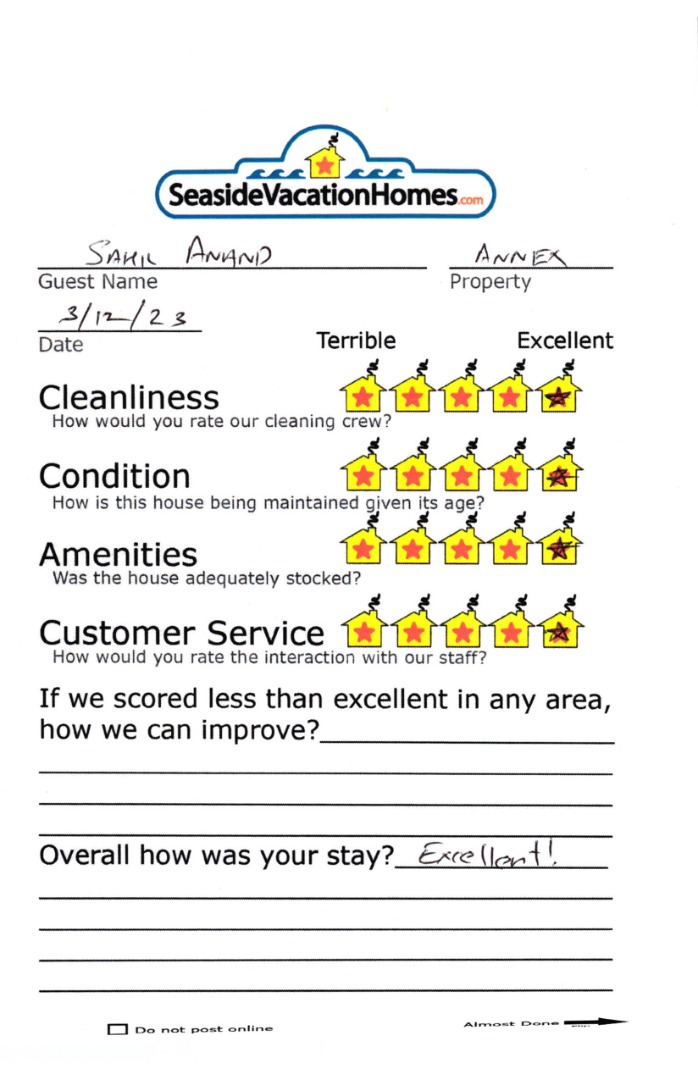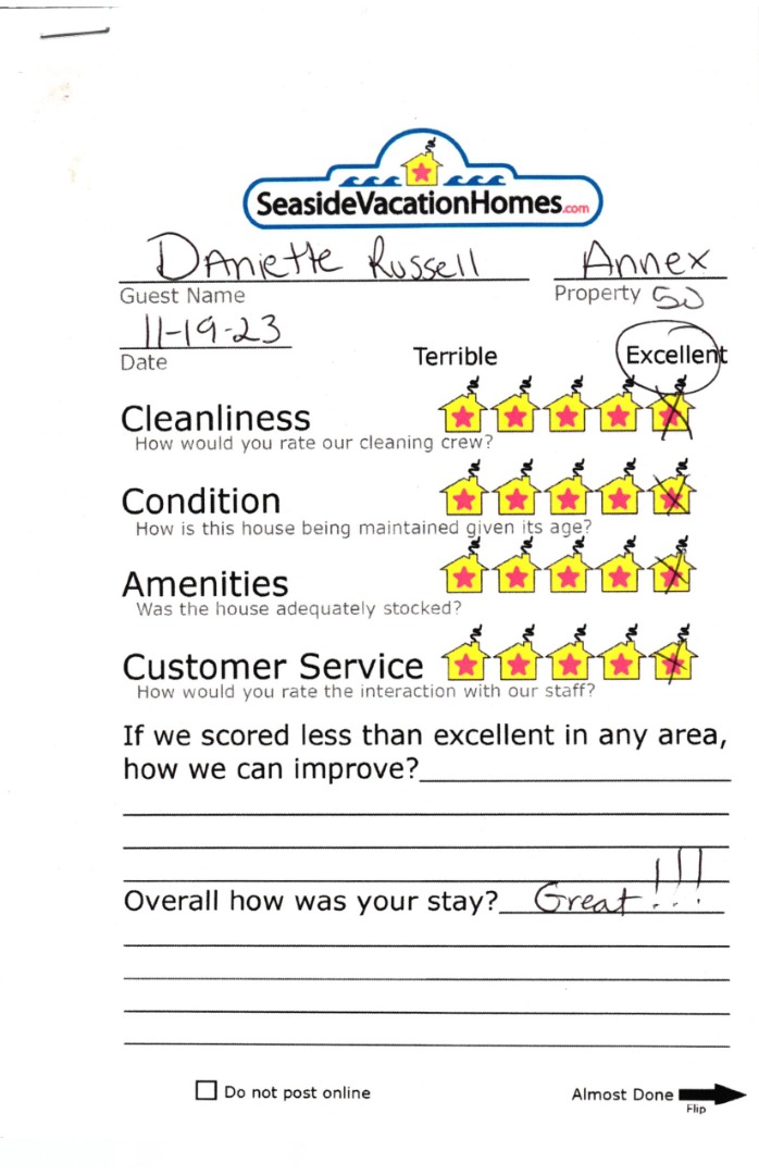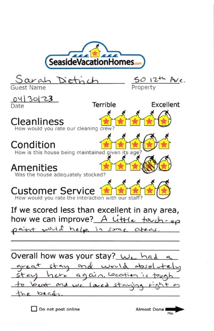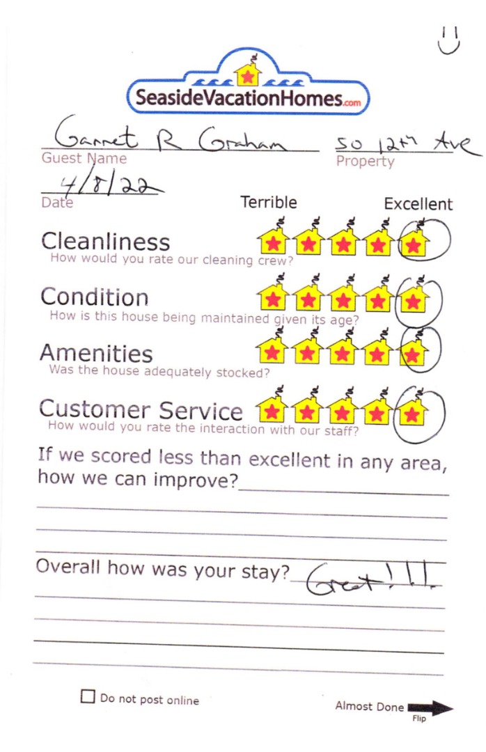 THE ANNEX at Seaside Beach: OCEAN FRONT is nestled on the edge of the sand dunes providing privacy and its own beach access. Just 50 feet from the north end of Seaside’s famous boardwalk, the Prom, sits this oceanfront home. At this location you can walk directly from the deck right to the sand dunes, ocean and beach. A ten-minute stroll will take you to the aquarium, Turnaround, downtown shops and restaurants. The two-story home is approximately 1800 square feet in size. The floor to ceiling picture windows and vaulted living room make it feel even bigger. A sun deck at the front of the home extends the living space outside. Two bedrooms and a bath are located on the main floor with one of the rooms furnished with a king bed and the other a queen. You can watch the activities on the beach from the living and dining rooms as well as the kitchen and upstairs loft. Expanded cable ensures you won`t miss any of your favorite programs when watching the large screen television. Upstairs is a family room equipped with a TV/VCR, games a foosball table, and a trundle bed. The large bedroom and bath on this floor has a queen bed, bunk beds and a twin bed to comfortably sleep four guests. There is parking for 2 vehicles on the property, one in the garage, and the other in front of the garage. The garage and parking pad in front of the garage is a shared space with the owner of the home, with the owner using one side, and the other side being designated for guests. Keep in mind the additional cleaning charge ensures that your house will be spotless upon arrival and that you will not be asked to spend more than 5 min on the check out procedure. See policies for more booking information.
