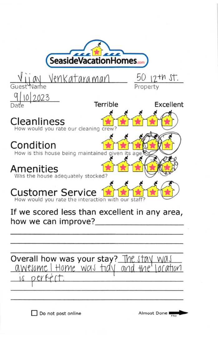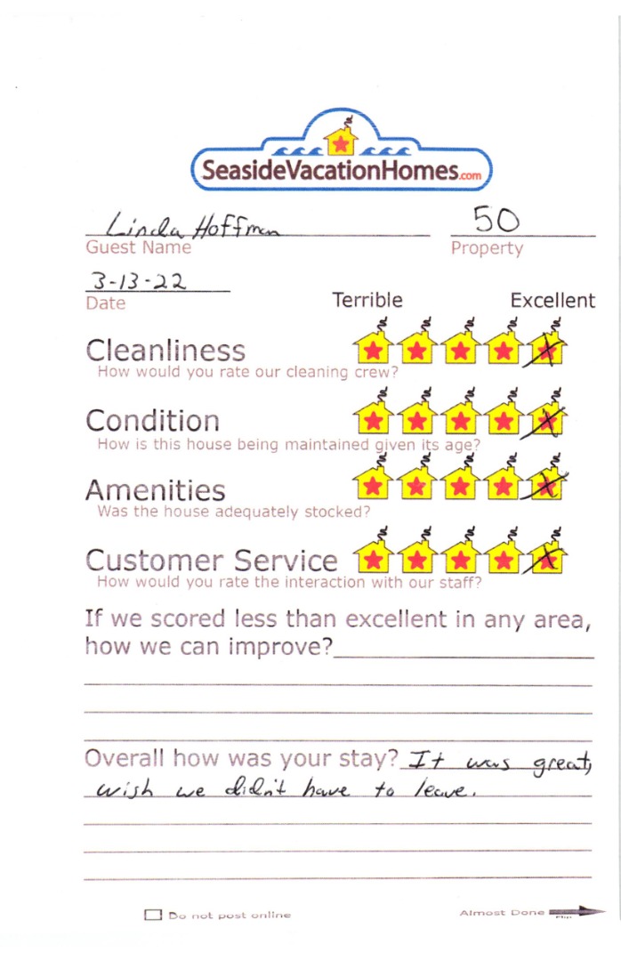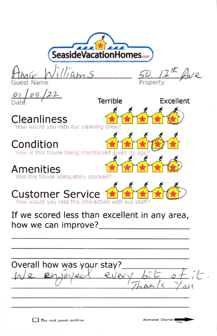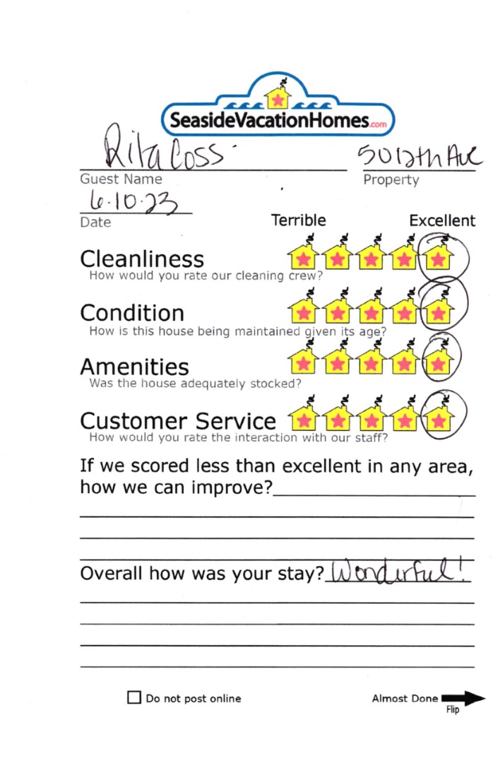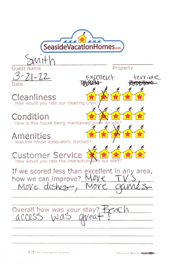 Example: "Is the balcony screened in?" or "Is there a toaster oven?"