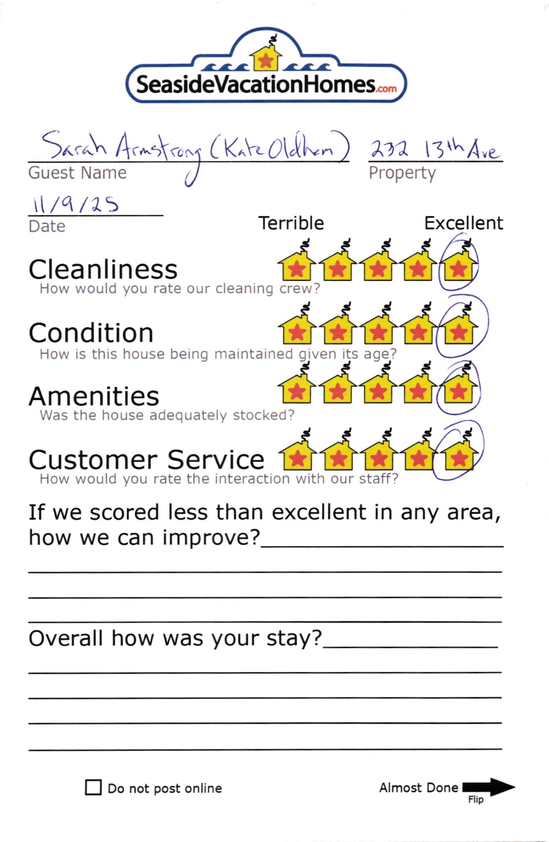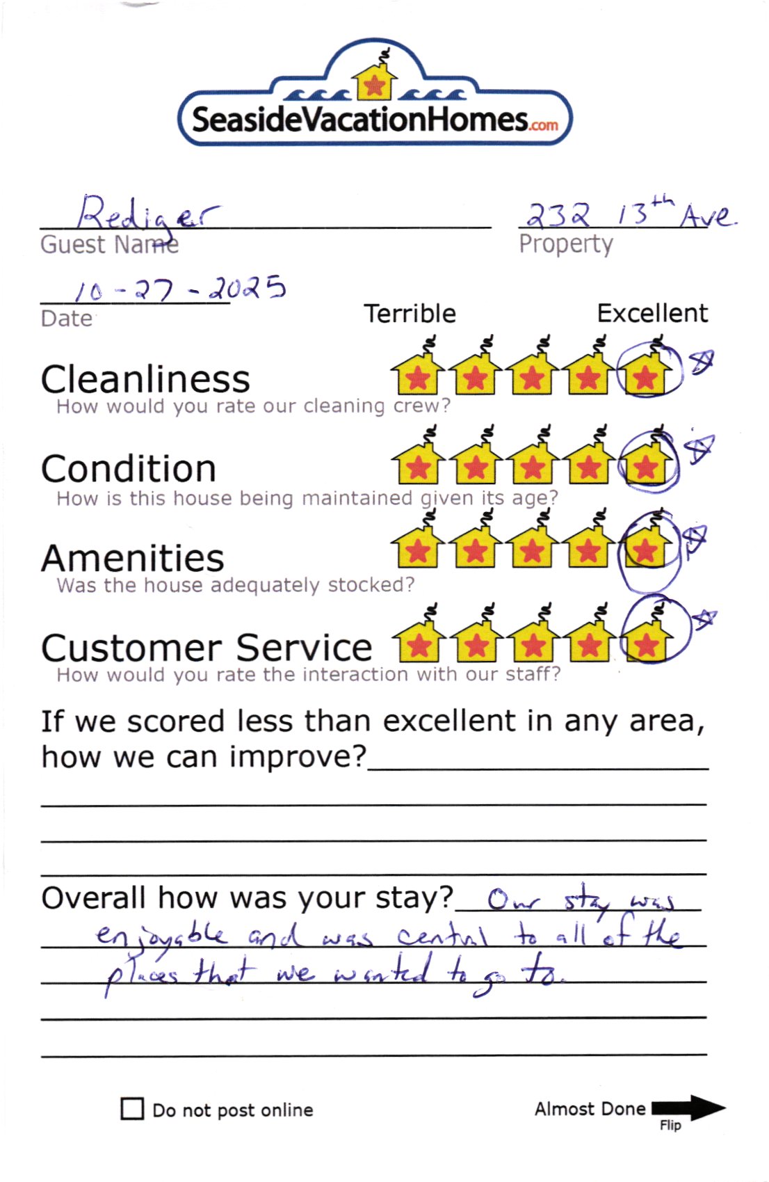 Example: "Is the balcony screened in?" or "Is there a toaster oven?"